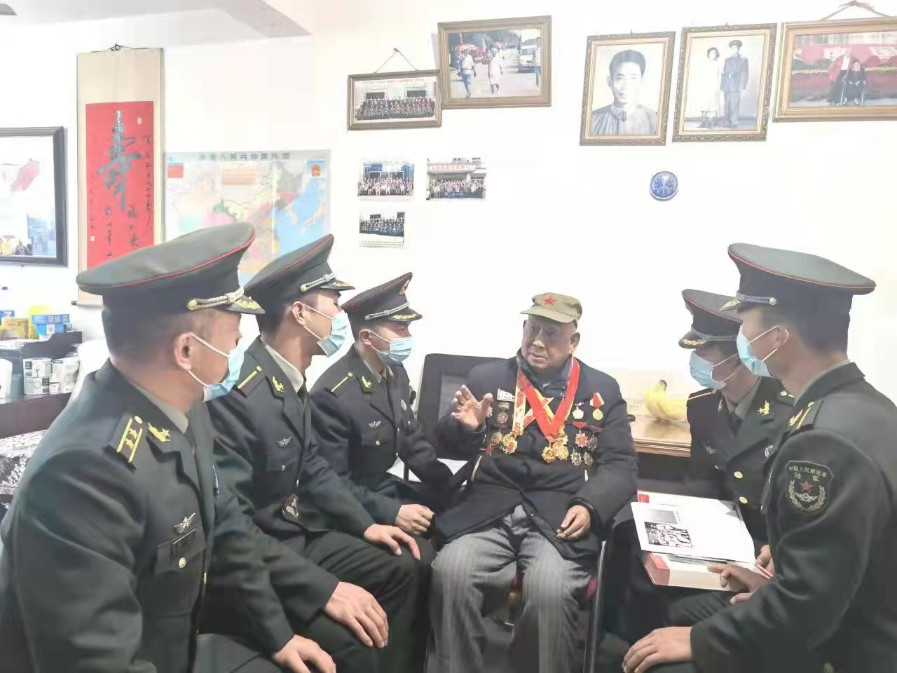 学员们怀着无比崇高的敬意给老人带来了慰问品,帮助打扫房屋卫生,然后围坐在老人身边,认真聆听老人的战斗故事。“我是1943年给八路军送鸡毛信就参加了革命。为什么?旧社会三座大山的压迫,穷苦潦倒,无法生存。走投无路了,毛主席、共产党来了……”老人滔滔不绝的讲述那段艰苦卓绝的战斗历程。