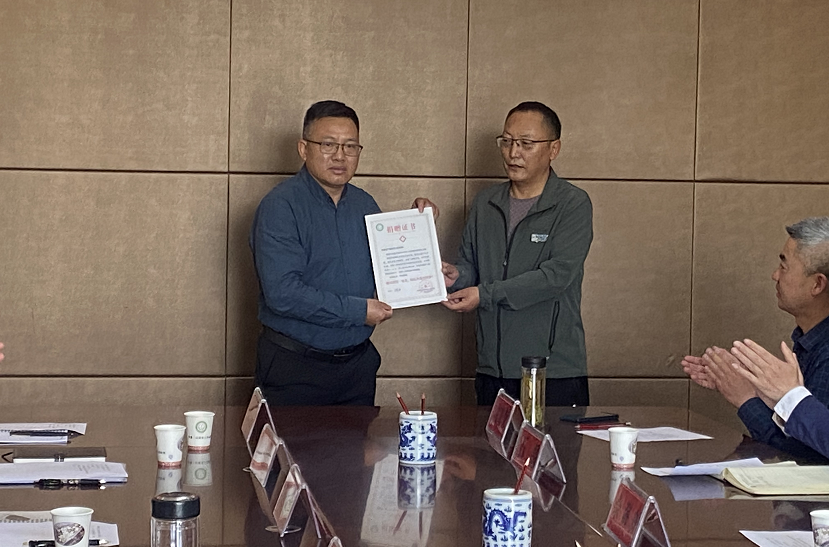 山南市人民医院吾根单增书记向广德阳光口腔医院杨光院长颁发捐赠证书