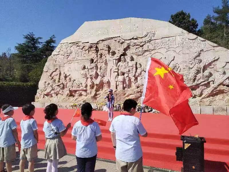 “仪式的第二项,向烈士纪念碑三鞠躬……”国庆肇始,天朗气清,碧空如洗。国庆节期间,人来人往的悼念广场上,前来接受革命传统教育的团队在烈士纪念碑前列成了整齐的队伍,随着工作人员的口号,举行向烈士纪念碑敬献鲜花仪式。