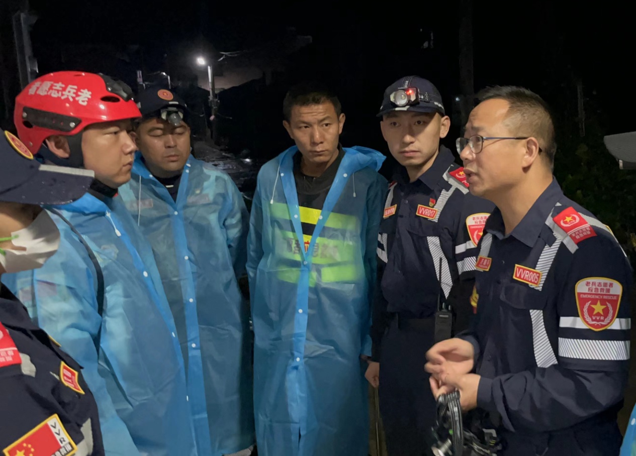 20时55分,老兵志愿者应急救援队第一梯队准备装具、携带通信救援器材,队长曹新峰组织队员迅速登车前往事发地点。教导员邱晓君组织第二梯队集结待命,随时做好增援准备。