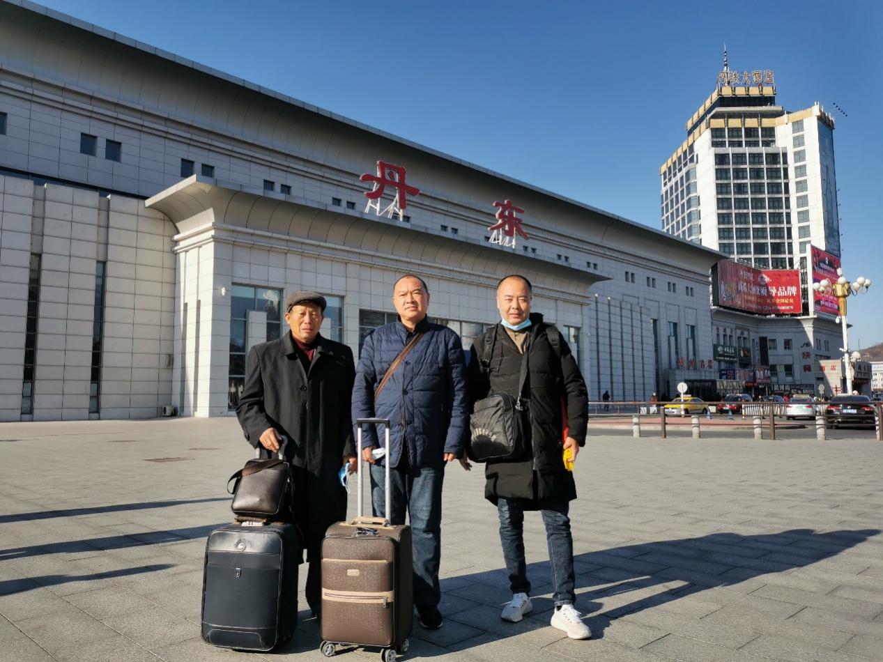 2020年11月,桂振岭与王光华(中)王东超(左)乘高铁前往丹东寻找王学风烈士的足迹。