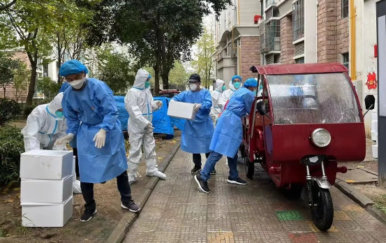 为打好这场硬仗,戴常兵一马当先,第一时间加入临时党支部,决心按时按点不打折扣地完成任务。在随后的物资卸载和分发到户过程中,他和其他党员们冲锋在前,一路小跑,与其他志愿者一道分工协作、携手并肩,最终比原计划提前3个多小时完成配送任务。