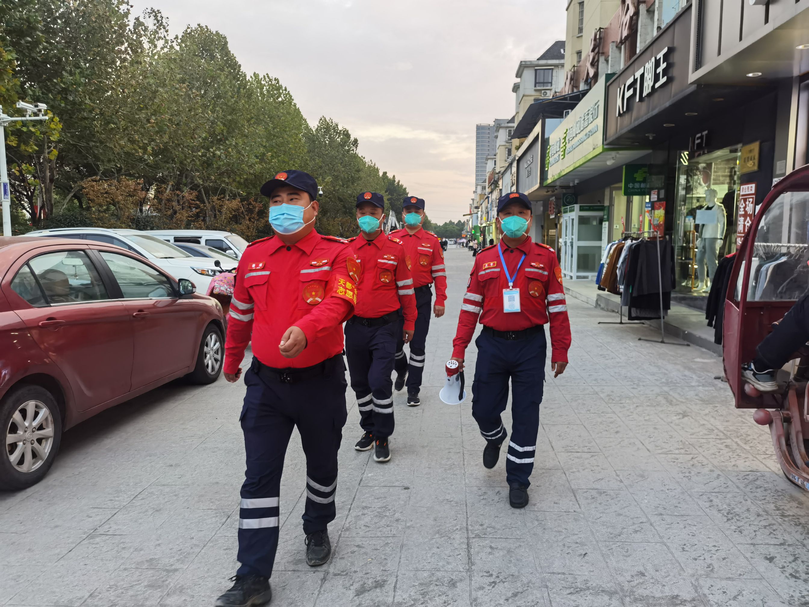 经开区锦绣老兵救援队督促沿街商铺疫情防控工作