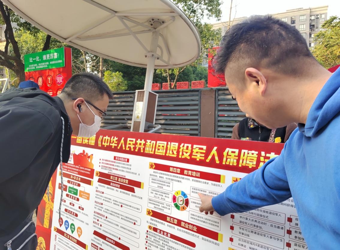 据悉,本次普法活动主要围绕《退役军人保障法》《军人地位和权益保障法》进行宣传。活动现场,通过布置展板、设置咨询台、现场讲解、发放宣传资料等多种方式,大力宣传《退役军人保障法》,重点对《退役军人保障法》中的移交接收、退役安置、就业创业等内容进行深入宣传,同时针对大家关心的抚恤优待、褒扬激励机制等进行了解答,深受群众欢迎。普法活动中,共解答退役军人及群众政策咨询50多人次,发放宣传资料200余份,营造了良好的法治氛围,取得了较好的普法宣传效果。