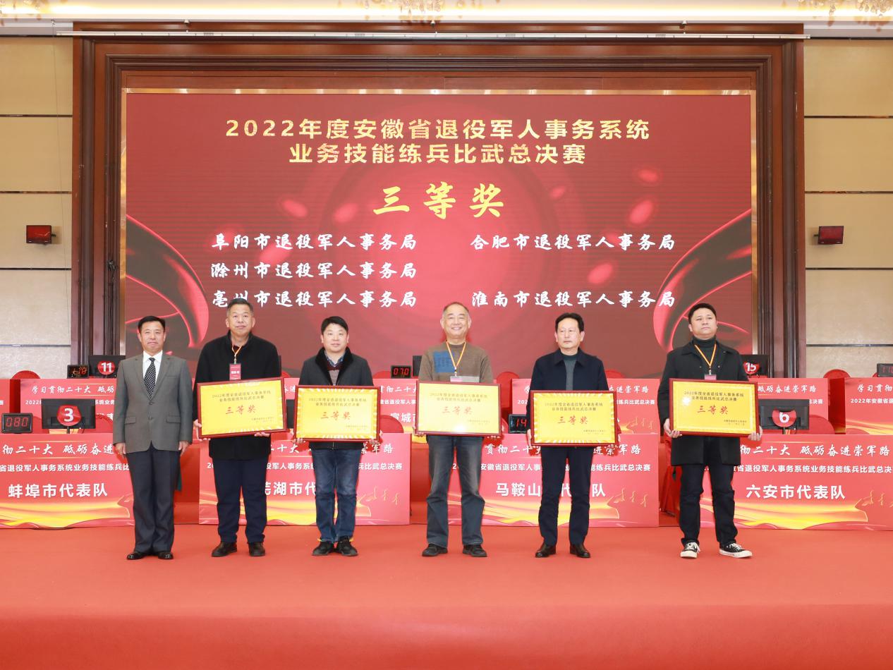 近日,安徽省退役军人事务厅举办全省退役军人事务系统业务技能练兵比武总决赛,全省17支代表队51名业务骨干参加了比赛。最终,合肥市代表队荣获团体三等奖。