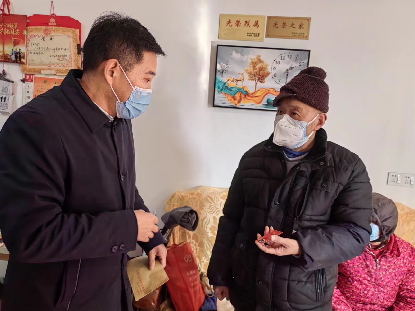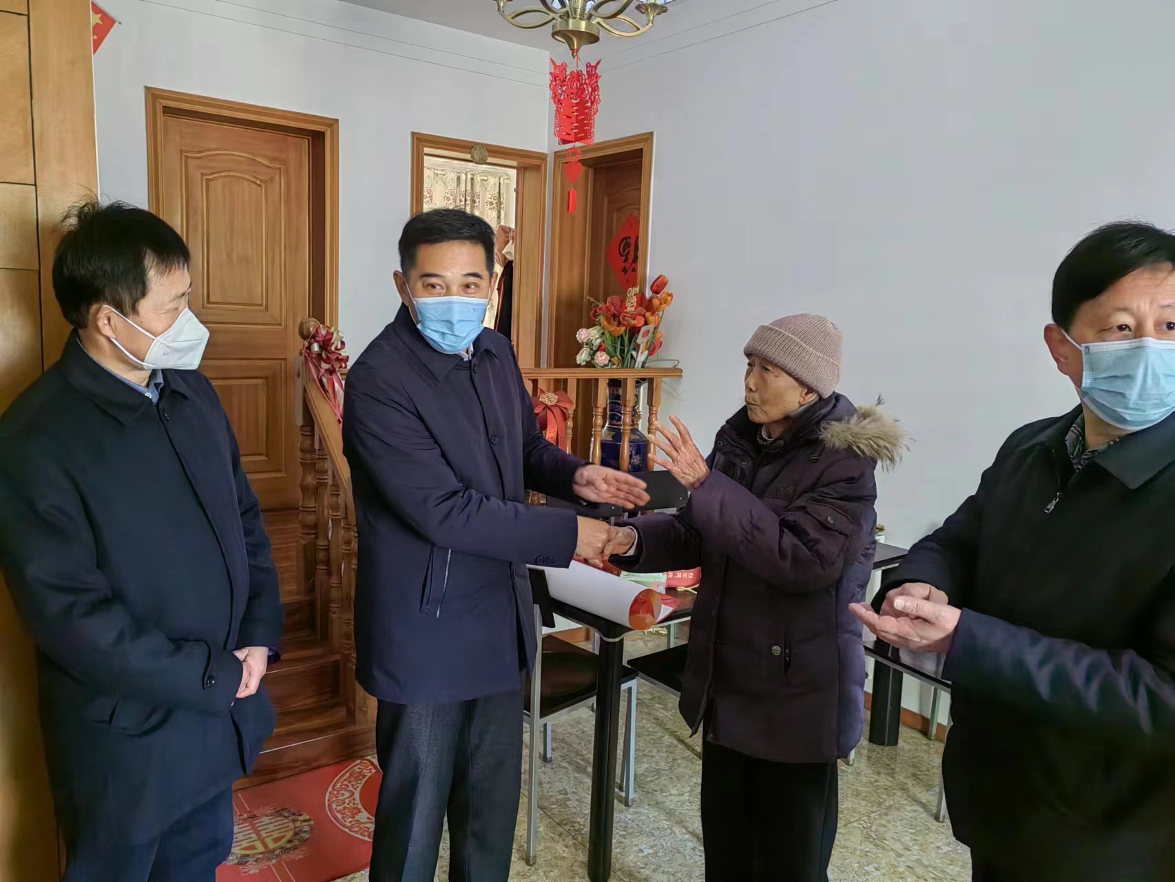 1月11日,合肥市退役军人事务局党组成员、副局长陈寿一行到庐阳区开展常态化联系退役军人工作,入户走访慰问退役军人和烈士遗属,为他们送上慰问金,并致以新春佳节的问候与祝福。