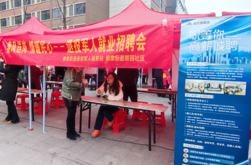 2月23日,合肥市包河区烟墩街道联合包河区人力资源和社会保障局、包河区公共就业和人才服务中心,在顺园社区开展“春风送岗惠军民,精准服务真助企”为主题的2023年烟墩街道退役军人招聘会。