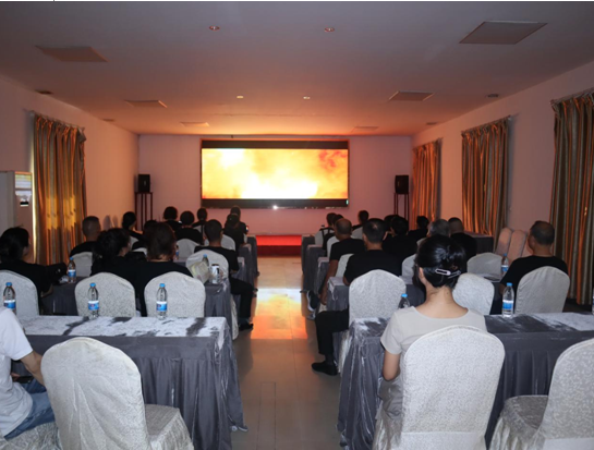 在观看红色电影《战狼》和《红海行动》中,军属们精神饱满、全神贯注,深刻感受到祖国的强大和中国军人顽强不屈的精神。