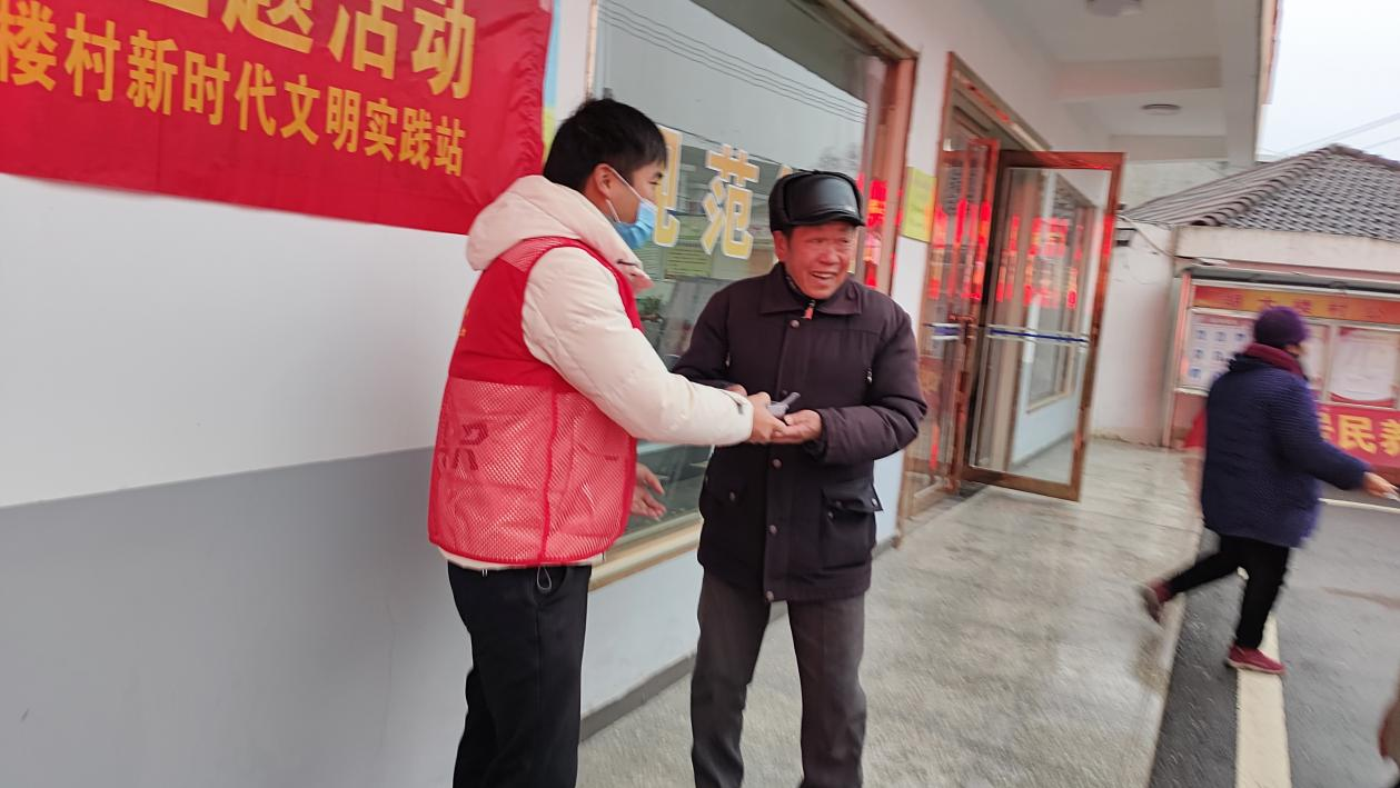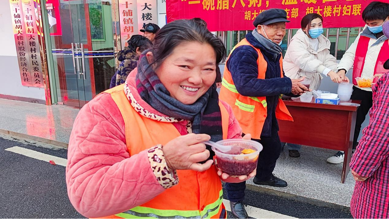 俗话说:“吃了腊八粥,就把来年盼”,腊八粥里的八样食材寓意丰富,寄托着劳动人民盼望新的一年丰收吉祥的的朴素心愿。志愿者将一碗碗盛好的粥递到村民手中,并送上祝福:“喝腊八粥喜迎新春,祝愿大家伙在来年都阖家幸福,健康平安!”