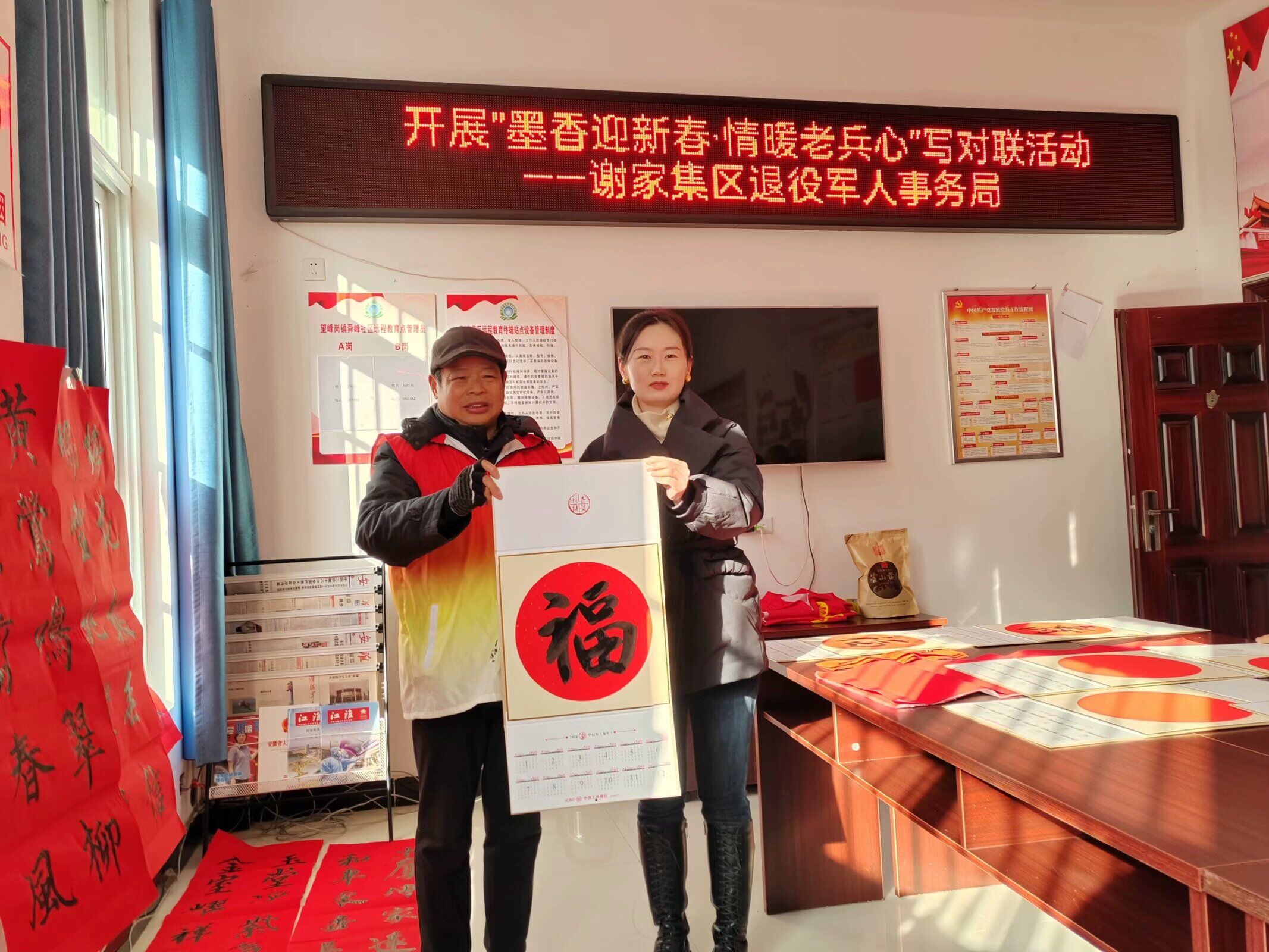 “无联不成春,有联春更浓”,新春佳节即将来临之际,谢家集区退役军人事务局开展“墨香迎新春 情暖老兵心”迎新春写春联送祝福活动,邀请了退役军人书法家走进望峰岗镇现场挥毫,为退役军人、军属及其他优抚对象送上新春的问候和诚挚的祝福。