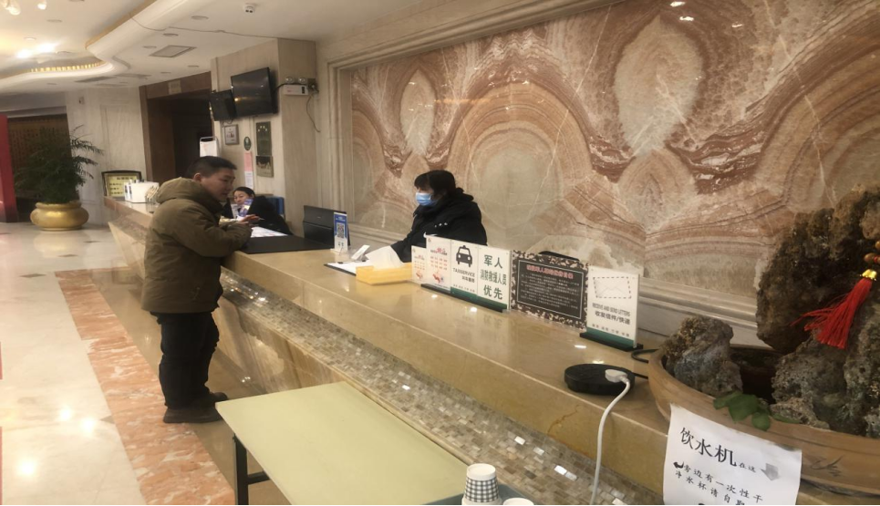工作人员到久和大酒店,大门有“现役军人驿站”铜制标牌,大厅有“军人、消防救援人员优先”标识,工作人员态度热情,引导和帮助办理业务,每天安排2个标准间或单间,现役军人凭军官证(士官证、士兵证)等有效证件可免费入住,配偶可凭结婚证随行入住。