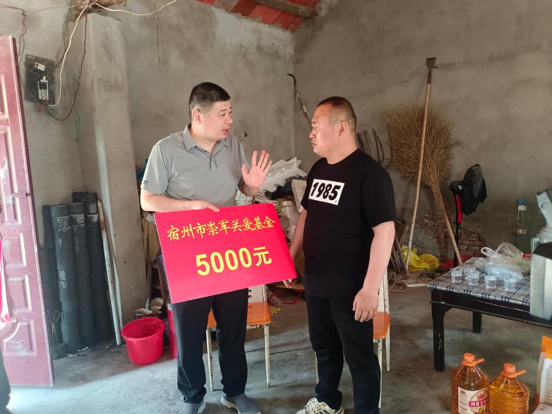 “感谢党,感谢退役军人事务局的关爱,给我的生活带来了新的希望。”“崇军关爱基金”受助人王伟激动地说。4月26日下午,宿州市退役军人事务局联合市慈善总会到灵璧县杨疃镇,帮扶慰问“崇军关爱基金”受助人。