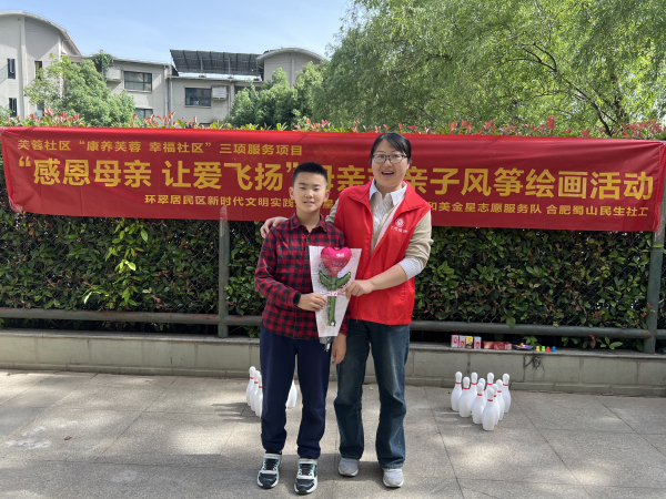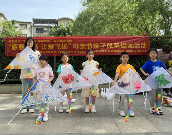 五月,一个微风不燥,温柔的月份。为庆祝母亲节到来,引导儿童学会感恩母亲,表达对妈妈的爱,营造融洽的亲子关系,5月12日下午,金星家园小区党支部、业委会、和美金星志愿服务队联合物业、合肥蜀山民生社工在金星家园小区广场开展“ 感恩母亲 让爱飞扬 ”母亲节亲子风筝绘画活动,邀请社区亲子家庭参加此次风筝绘画活动。