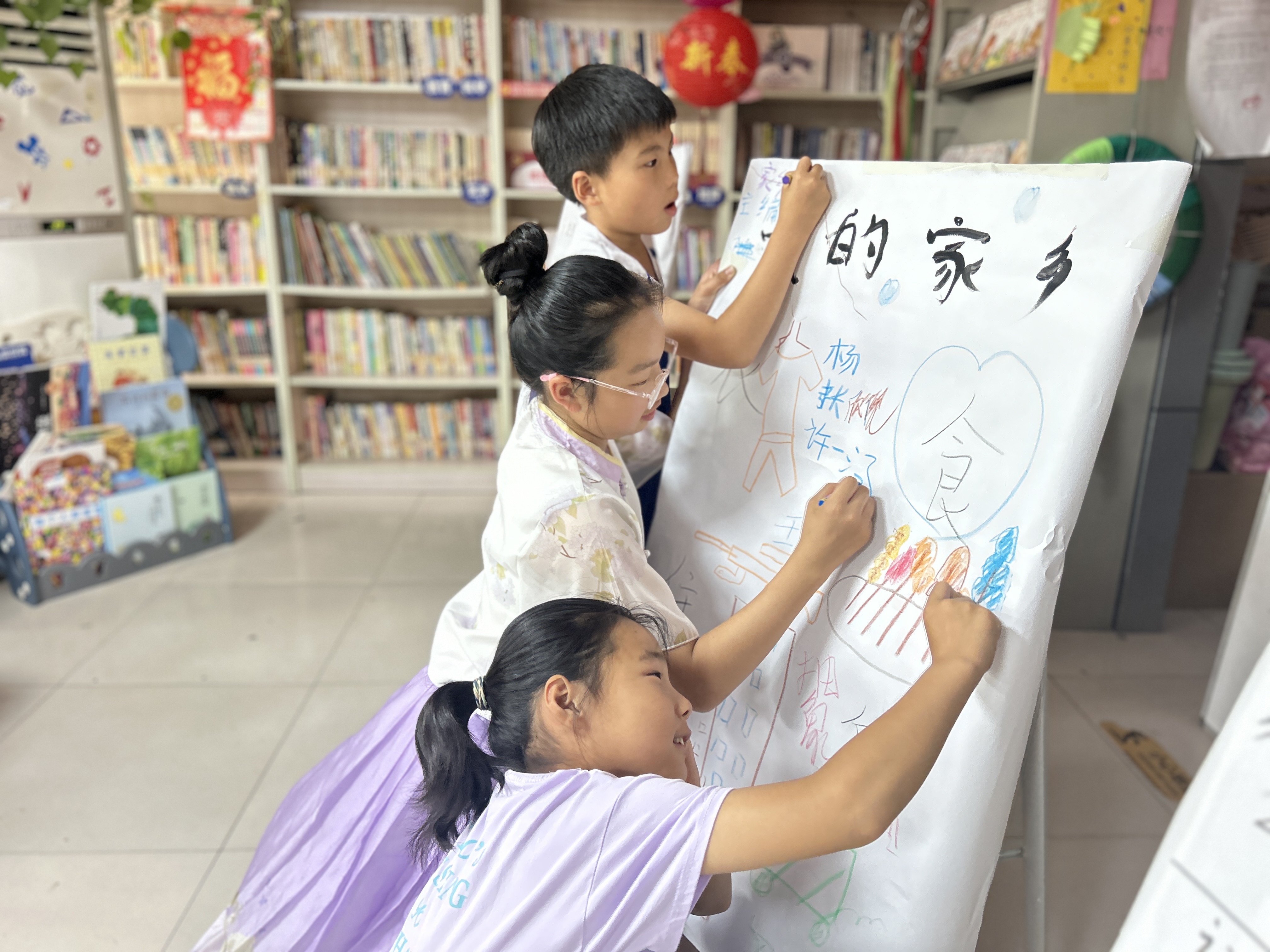 议事会开始前,青橙于老师带领孩子们回顾了前几次议事会的精彩内容。孩子们积极参与,就社区环境改善、公共设施建设、社区活动开展等议题提出了许多富有创意的建议,一组、二组议事长分别代表小组组员就所议事项做最后陈述和总结。通过议事会的讨论和实践,孩子们学会了表达自己的观点,认真倾听他人的声音,各种天马行空的创意层出不穷。接下来,活动进入了描绘“我的家乡”环节。孩子们拿起画笔,尽情挥洒自己的想象。透过孩子们的视角与创作,一幅幅色彩绚丽、丰富多彩的社区画卷呈现眼前,孩子们互相分享自己的作品,表达心中的期许。相信在未来的日子里,这些孩子们将会成为社区建设的中坚力量,为社区发展建言献策。