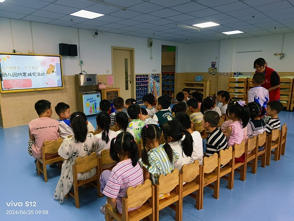 为强化全民防震意识,助力儿童提升遇险紧急安全意识,进一步普及防震减灾知识和技能,2024年6月25日,九龙居民区党委、新时代文明实践站、世茂翡翠府邸小区党支部携手合肥幼教集团世茂首府幼儿园和合肥蜀山民生社工在园区内开展“人人讲安全,个个会应急”防震减灾教育活动。
