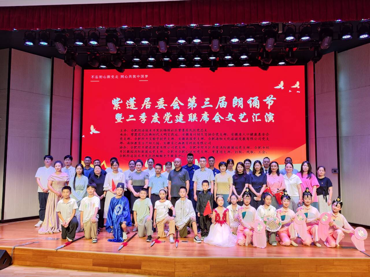 为丰富辖区党员群众精神文化生活,提高党员的党性意识,增强党组织的凝聚力和战斗力,营造爱党爱国的浓厚氛围,用声音传递正能量,共同庆祝中国共产党成立103周年,6月24日,合肥经开区锦绣社区紫蓬居民区党总支组织开展紫蓬居委会第三届朗诵节暨二季度党建联席会文艺汇演。
