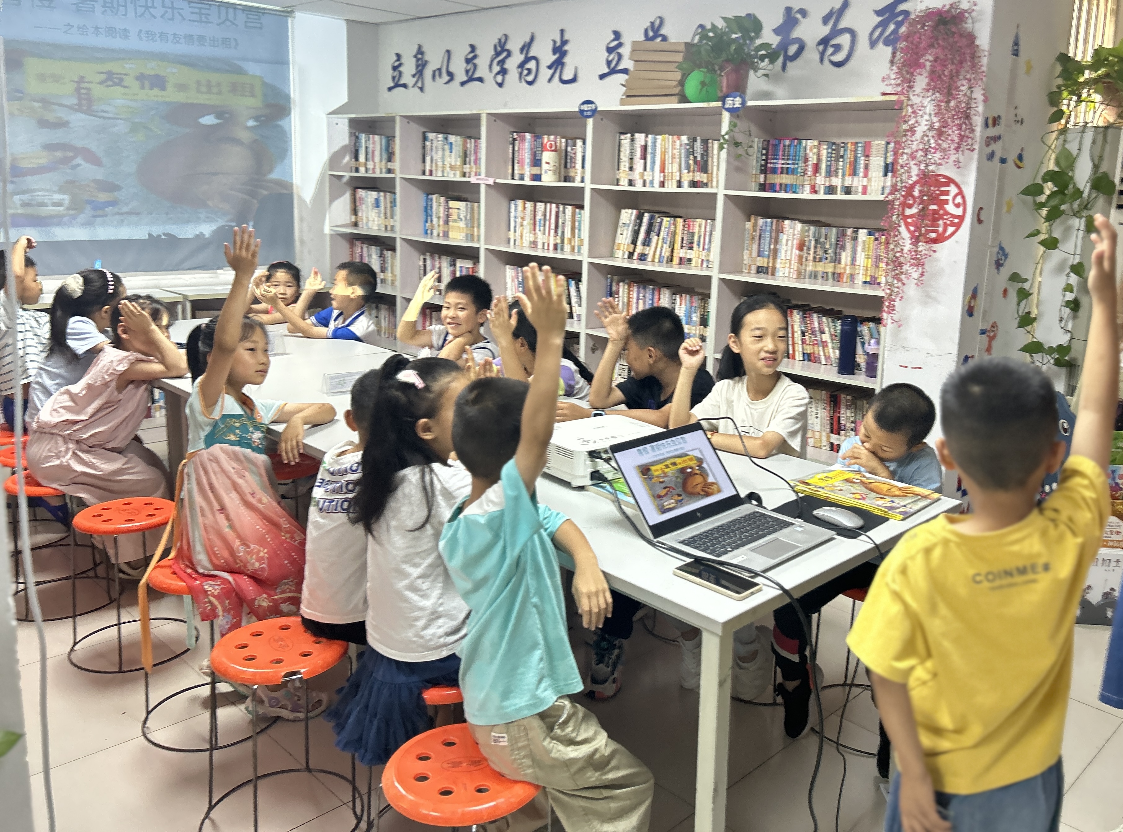 第三天的绘本阅读活动中,孩子们一同阅读了《我有友情要出租》。在故事分享环节,孩子们踊跃发言,分享自己对友情的理解和感悟,蒙眼书写友情的特别活动,让孩子们更加深刻地体会到友情的珍贵和温暖。