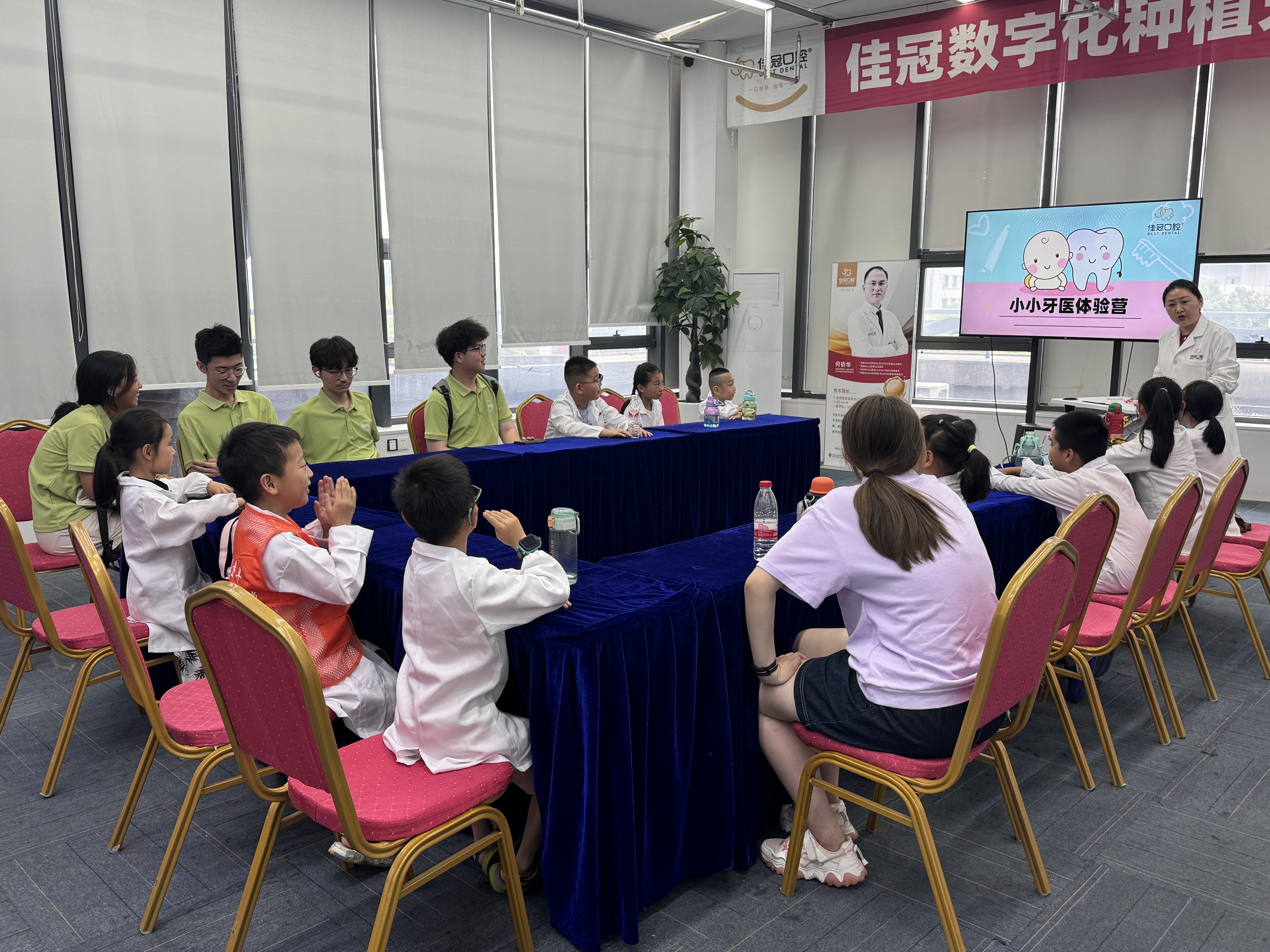 活动开始进行了口腔健康知识讲座,由佳冠口腔的专业医生为孩子们讲解了口腔卫生的基本知识,包括牙齿的结构、常见口腔疾病及其预防措施。在活动互动体验区设立了模拟刷牙和牙齿检查的体验区,孩子们可以在专业人员的指导下,学习正确的刷牙方法和自我检查牙齿的技巧。通过趣味问答的形式,激发孩子们对口腔健康知识的兴趣,加深他们对所学知识的记忆。