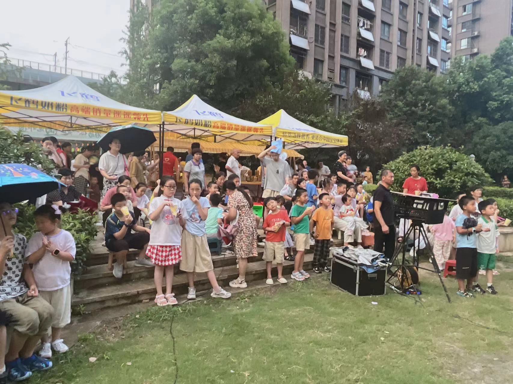 活动现场,精心设计的趣味游戏区域热闹非凡。无论是亲子合作的“西瓜接力赛”,还是考验体力与智慧的“拔河比赛”,都吸引了众多家庭踊跃参与。游戏中,大人小孩齐上阵,欢声笑语不断,不仅增进了亲子关系,也让邻里间的距离悄然拉近。夜幕降临,虽然天空下着蒙蒙细雨,但是小区广场上人声鼎沸,灯火通明,欢声笑语,为大家精心挑选的军旅爱国情怀影片在露天荧幕上播放,居民们或站或坐,手捧冰镇西瓜和香脆爆米花,全神贯注地观看。影片中的感人场景和英勇事迹深深触动了每一个人的心,激发了大家对军人的崇高敬意和爱国情怀。影片结束,掌声与欢呼声经久不息,不仅是对影片的认可,更是对社区凝聚力的赞许。