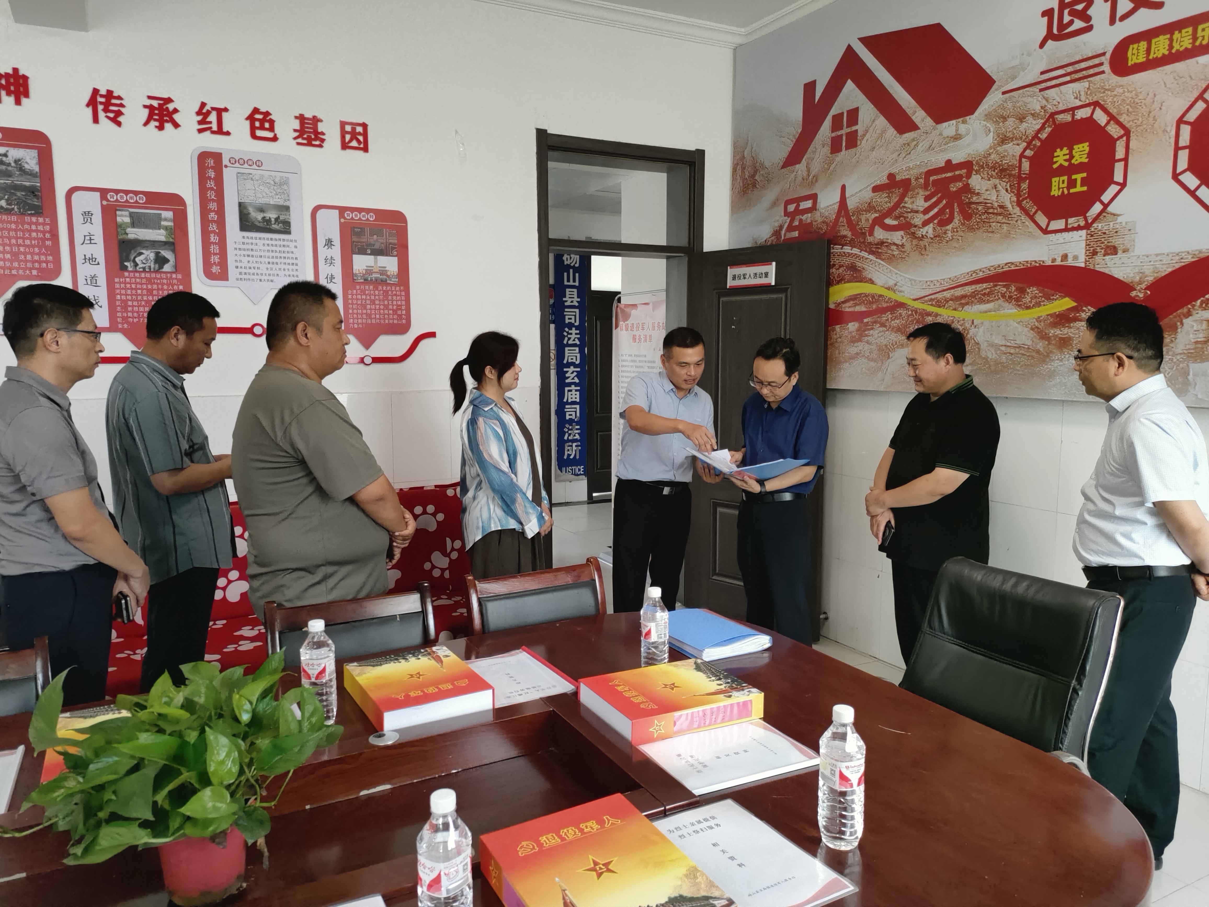 调研组一行在陈东强的引导下,首先到玄庙镇退役军人服务站。现场听取了玄庙镇标准化建设打造优质服务阵地、规范化建设完善优质服务体系、信息化建设提升优质服务水平的工作汇报,全面了解“五优”(阵地优、机制优、队伍优、保障优、服务优)工作落实情况。重点调研了有关困难退役军人的帮扶工作成效并查阅了相关台账记录落实情况,陈瑾还详细询问了工作人员配备、业务流程、管理制度、矛盾化解等情况。