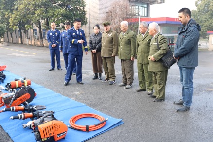 上午9时,市光荣院优抚老兵、党员一行8人来到市郊区消防大队。在消防讲解员的详细介绍下,近距离参观了救援车辆以及常用的消防器材和防护设备,详细了解了各类器材装备的技术性能以及各种器材在灭火救援战斗中的使用方法和作用。并在训练场上,观看了精彩的消防登高演练,在场的老兵和党员们纷纷为消防队员们精湛的业务能力和优良的工作作风点赞。