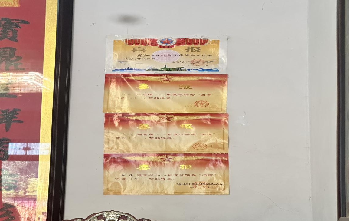 伴随着欢庆热闹的锣鼓声,队伍所到之处,乡亲们纷纷投来敬仰的目光。送喜报工作组一行给张洁家庭悬挂横幅,为张洁家人佩戴立功绶带、送达喜报和慰问金。张洁,于2018年12月入伍,因工作表现出色,多次被评为“四有优秀士兵”,2024年张洁因工作成绩突出,荣立三等功。当喜报被送到家中,张洁的父亲激动地说:“感谢部队的培养,这份荣誉不仅激励了孩子,也让我们全家感到自豪!”