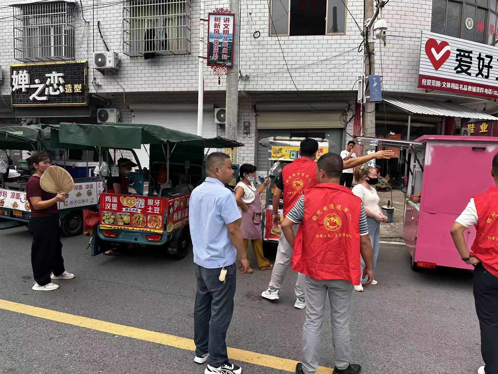 同时,针对校园周边可能存在的小商小贩占道经营问题,志愿者们坚持“沟通为先、妥善处置”的原则,耐心与商贩交流,向其详细讲解校园周边环境秩序维护的重要性,以及占道经营对学生通行安全、交通秩序造成的潜在影响。在志愿者的真诚沟通与积极引导下,商贩们纷纷理解并配合,主动规范经营行为,共同为学生营造了整洁、安全的放学环境。