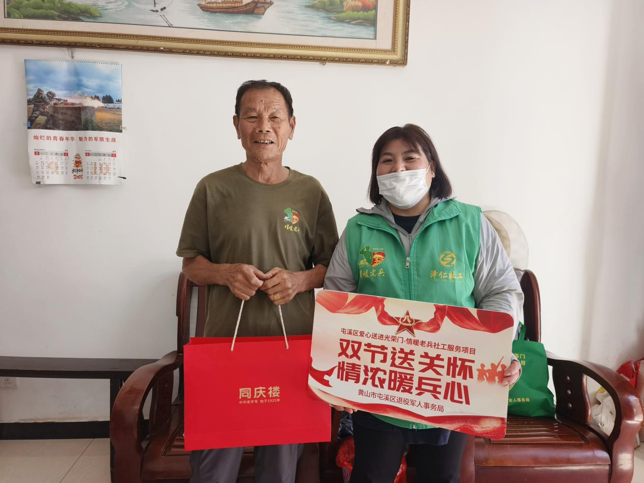 国庆与中秋“双节”在即,黄山市屯溪区退役军人事务局依托“爱心送进光荣门·情暖老兵”项目,集中开展走访慰问活动,为辖区61名困难老兵、烈属送上暖心问候与节日祝福。