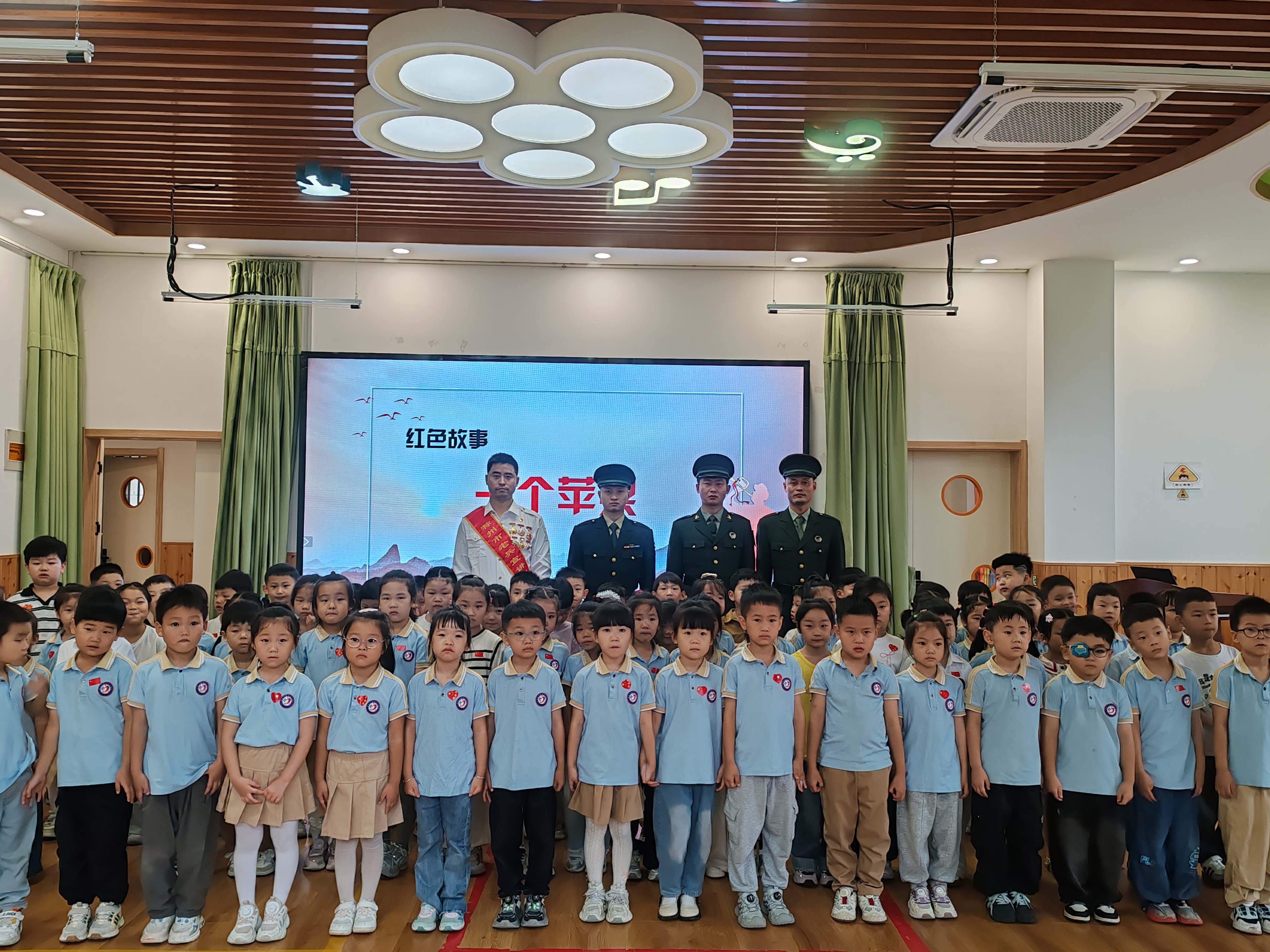9月29日上午,由天长市双拥办、东方豪庭幼儿园共同举办的“金秋迎华诞,童心颂祖国”国庆主题活动在该园举行。4名退役军人受邀走进校园,与200余名师生共同升国旗、站军姿、听红色故事,“零距离”为孩子们上了一堂爱国主义教育课。