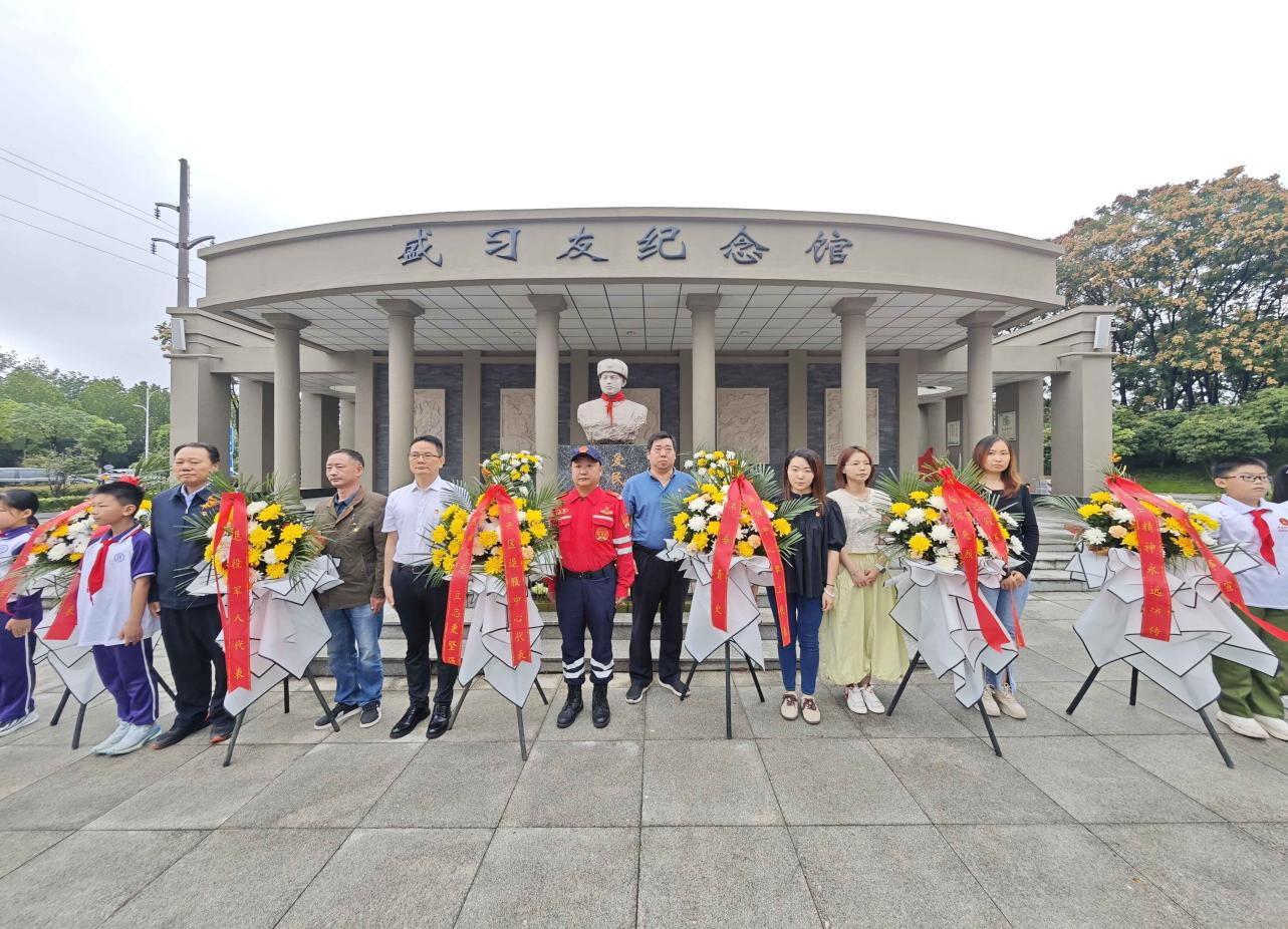 在主持人的引领下,全体人员为盛习友烈士默哀一分钟,并向烈士纪念碑行三鞠躬礼。默哀毕,各方阵代表依次缓步上前,向盛习友烈士纪念碑敬献花篮,表达对英雄的深切缅怀和崇高敬意。