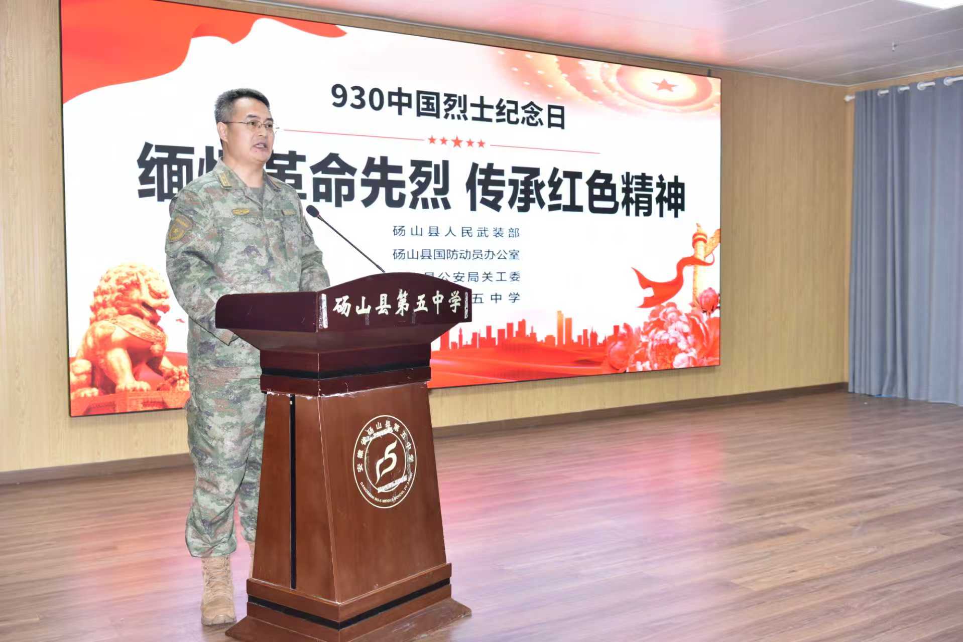 近日,砀山县人武部联合县国动办、县第五中学开展以“缅怀革命先烈,传承红色精神”为主题烈士纪念日活动,引导广大学生铭记历史、致敬英雄,勇担时代使命,为实现中华民族伟大复兴凝聚青春力量。