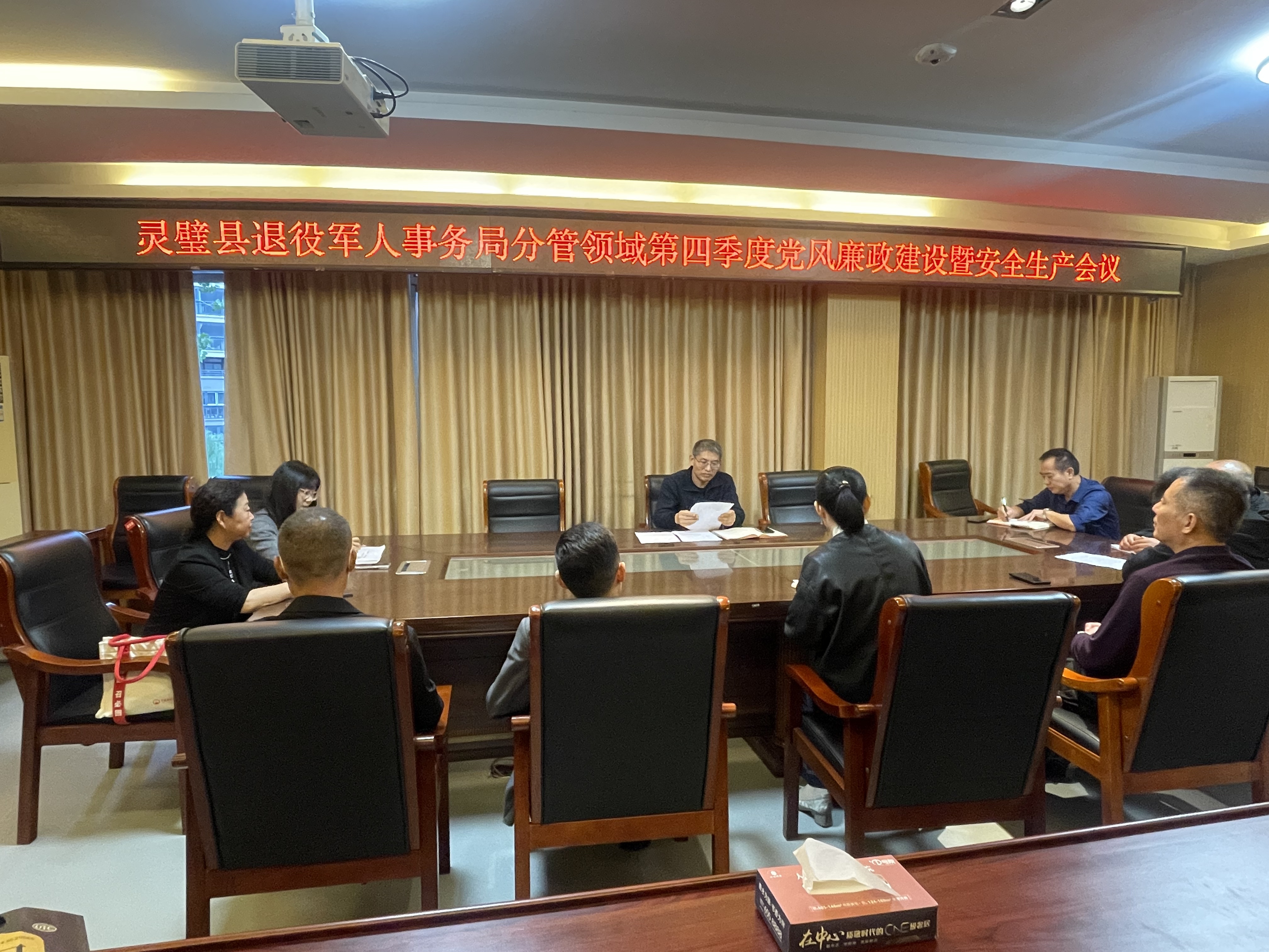 10月16日,灵璧县退役军人事务局召开第四季度党风廉政建设暨安全生产工作会议,深入学习贯彻习近平总书记关于全面从严治党及安全生产的重要论述,对第四季度党风廉政建设和安全生产重点任务进行部署安排,并开展集体谈话。