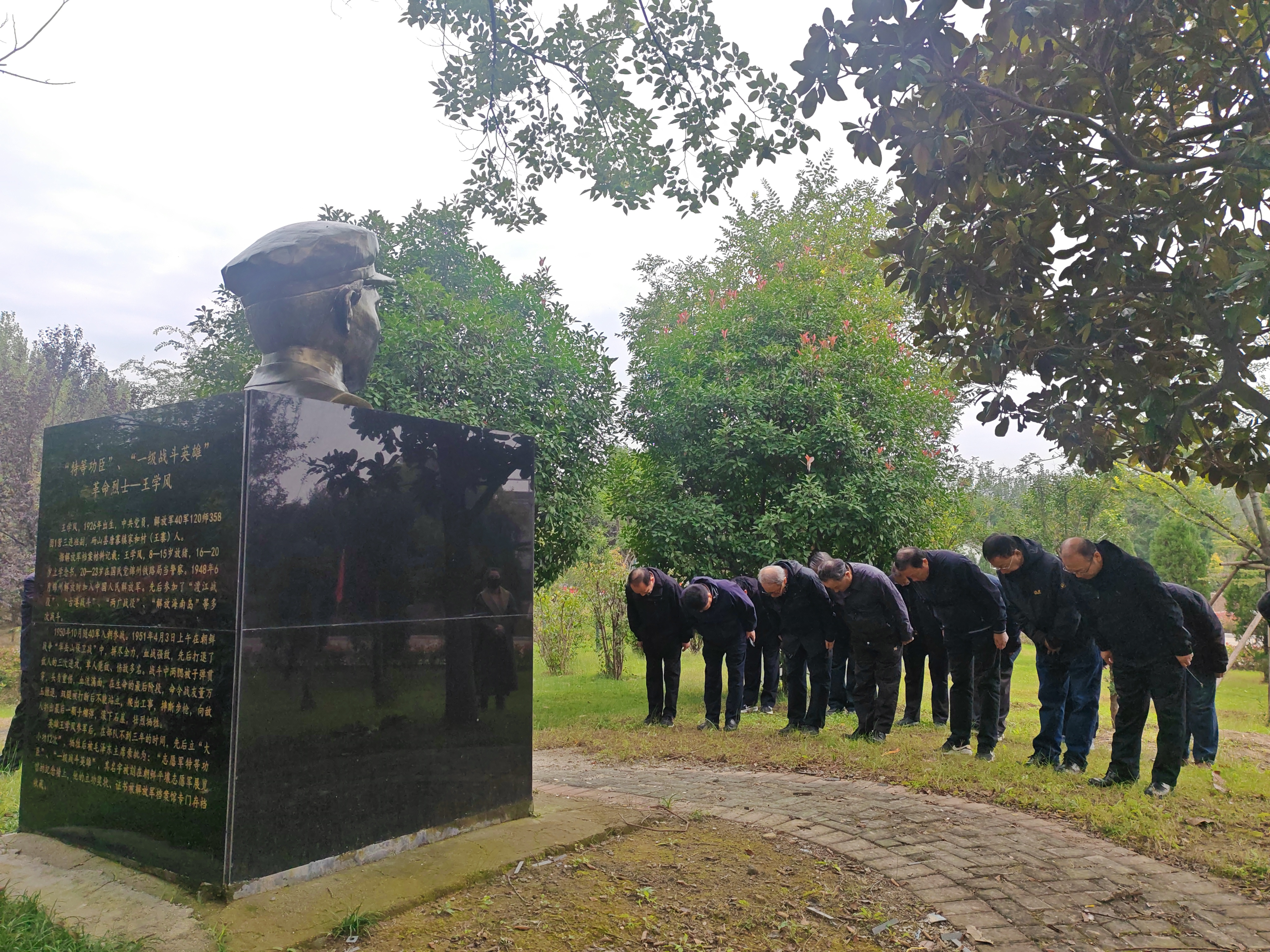 面对抗美援朝特等功臣、一级战斗英雄王学风烈士的雕像,全体人员怀着无比崇敬的心情默哀致敬,深切追思英雄的光辉事迹与不朽功勋。王学风烈士在战斗中展现出的英勇无畏和牺牲精神,是留给后人最为宝贵的精神财富,激励着人们砥砺前行。