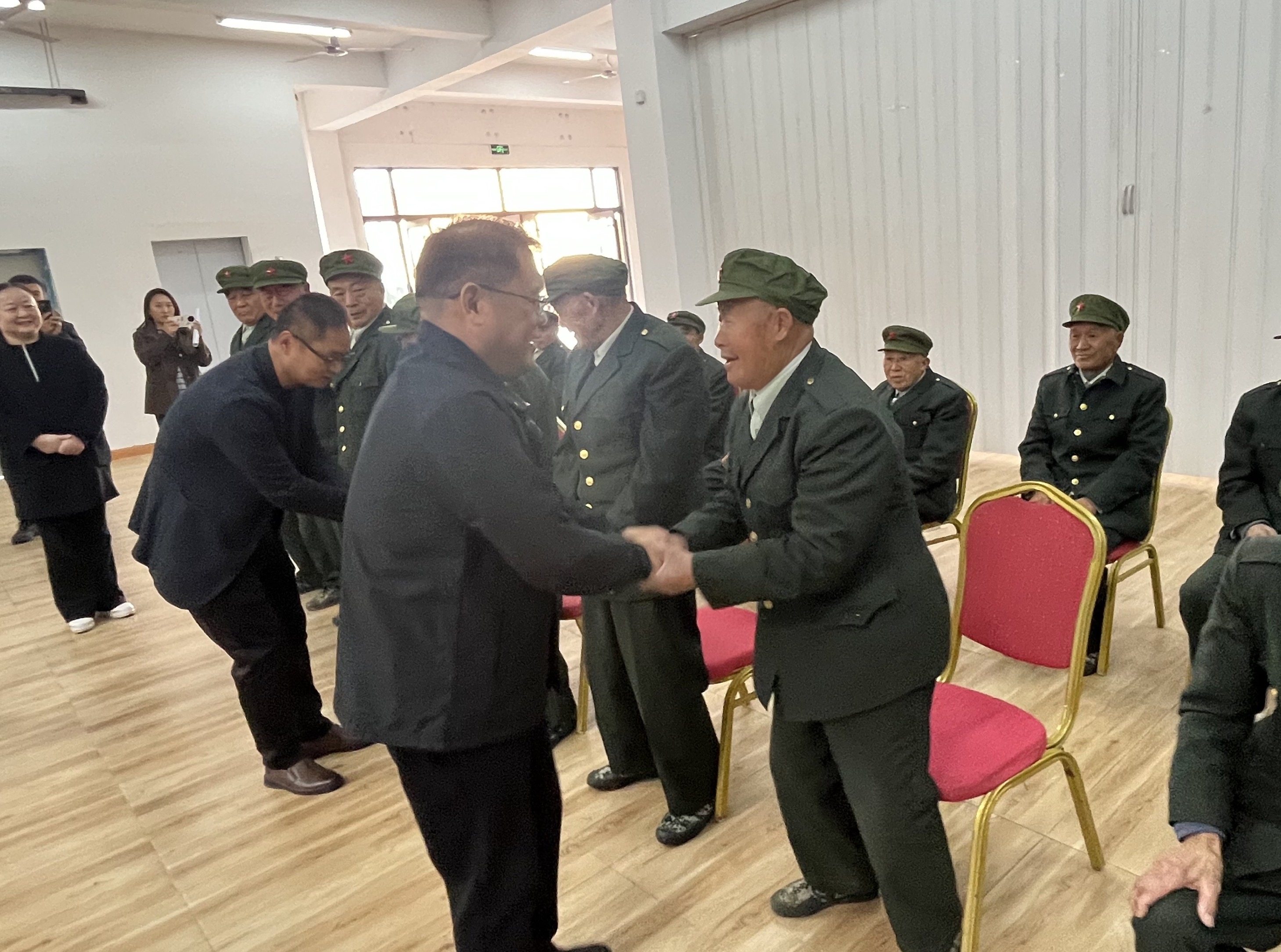 接着信晓号局长逐一与老兵们亲切握手、促膝长谈,详细询问他们的饮食起居、健康状况和生活需求,倾听他们讲述当年保家卫国的峥嵘岁月,同时叮嘱敬老院工作人员要用心用情做好服务保障,让老兵们住得舒心、过得安心,切实感受到党和政府的关怀。