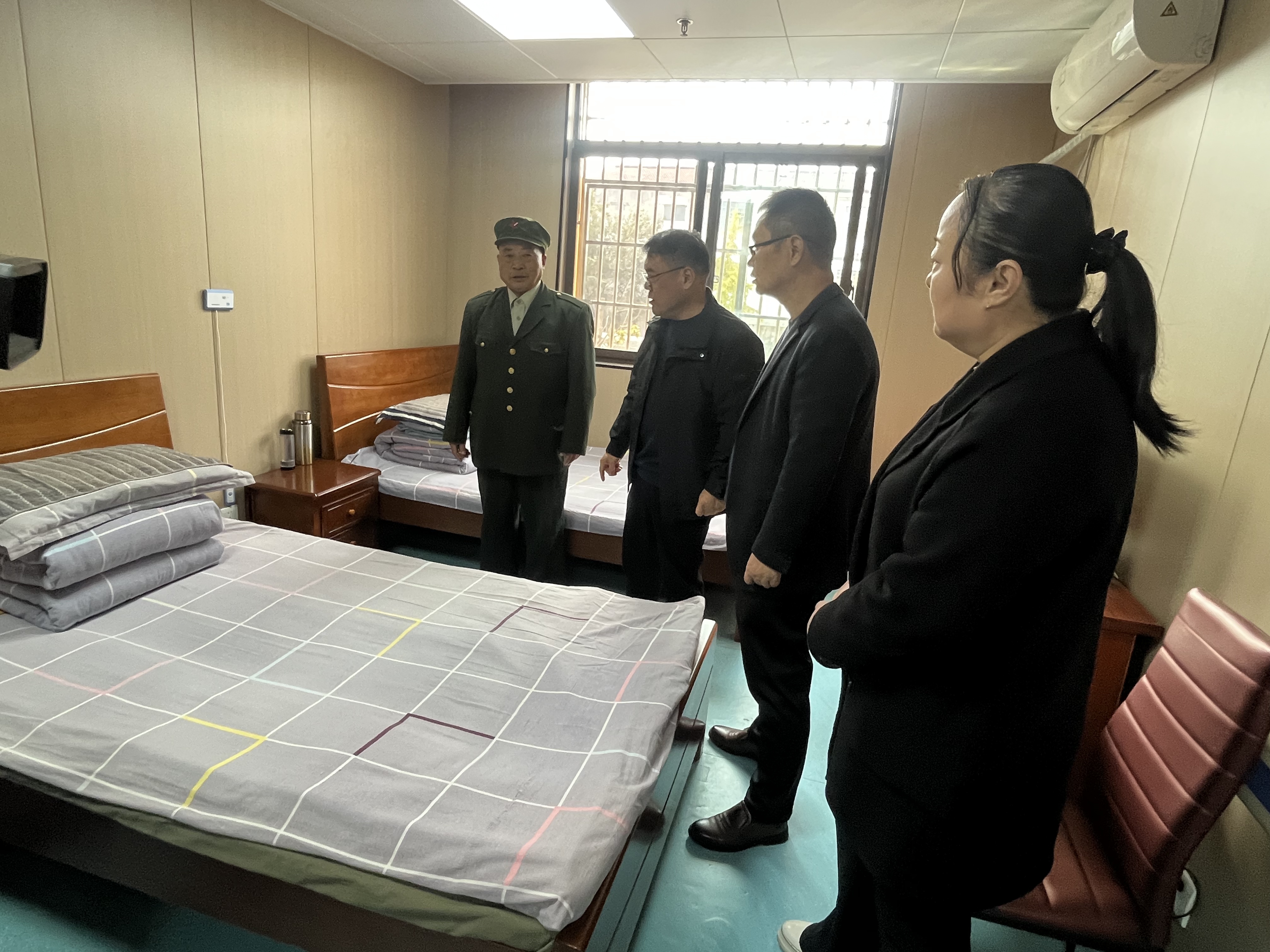 随后,信晓号局长还实地查看了敬老院的宿舍、活动场所等设施,了解日常管理、医疗保障、消防安全等情况,并表示,要始终把老兵们的冷暖放在心上,安全放在第一位,不断提升他们的幸福感和归属感。在查看食堂的环节,信晓号局长还和工作人员共同为老兵们包饺子,为重阳节增添一份暖意融融的祝福。
