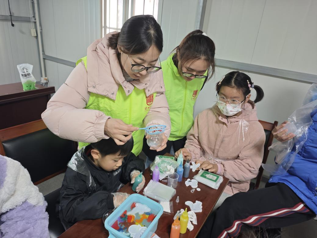 活动聚焦水晶滴胶创作,滁州学院的志愿者发挥专业优势,先讲解材料特性与安全规范,再手把手指导配比浇筑。孩子们分组协作,用模具打造卡通造型,创意与动手能力同步提升,现场互帮互助氛围浓厚。