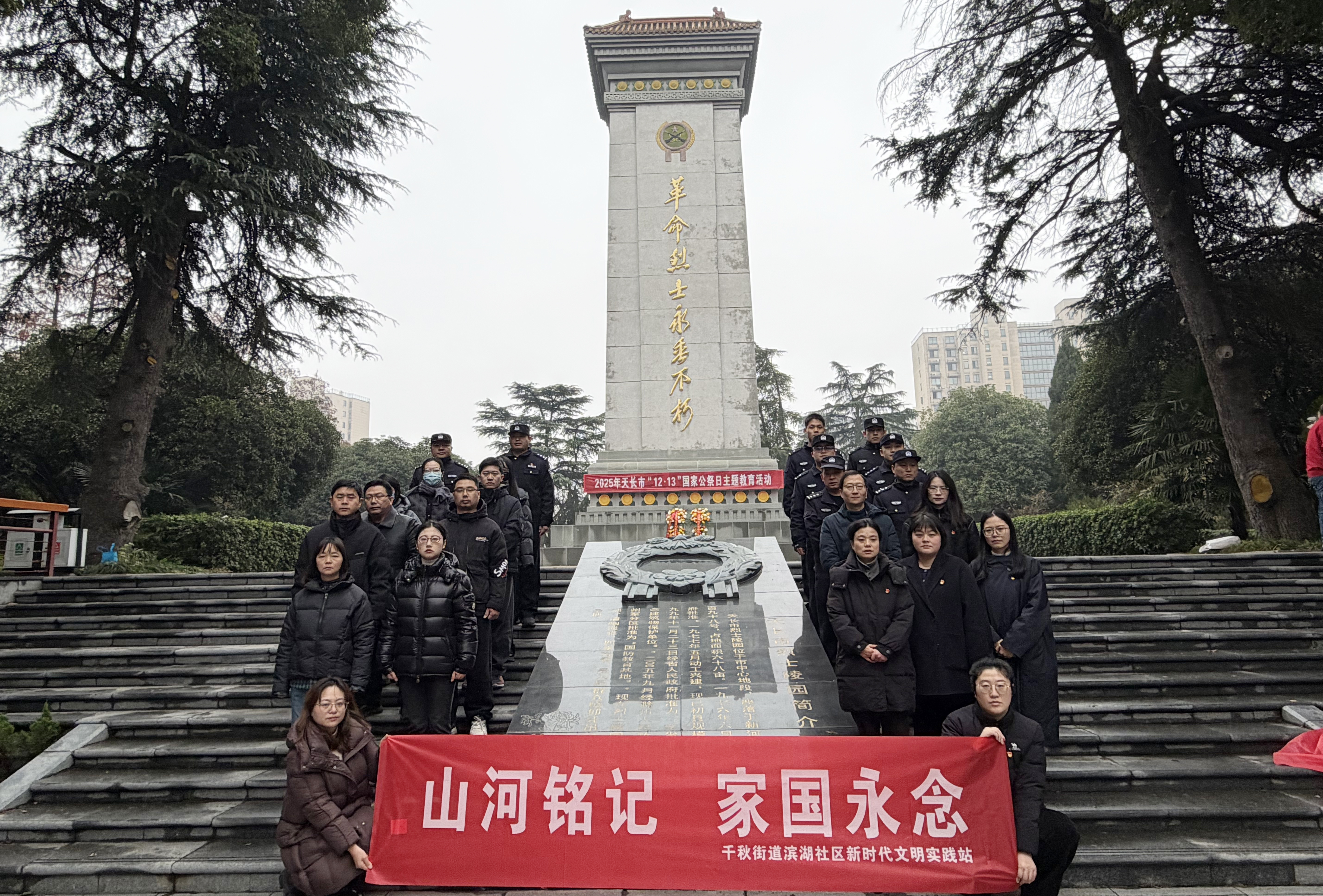 冬雨潇潇,天地含悲。12月13日上午,在庄严肃穆的天长市烈士陵园,一场由市退役军人事务局牵头组织的南京大屠杀死难者国家公祭日主题教育活动如期举行。来自千秋街道滨湖社区联合党委各成员单位的近百名干部群众,在冬日细雨中肃立,共同追忆逝者,缅怀英烈。
