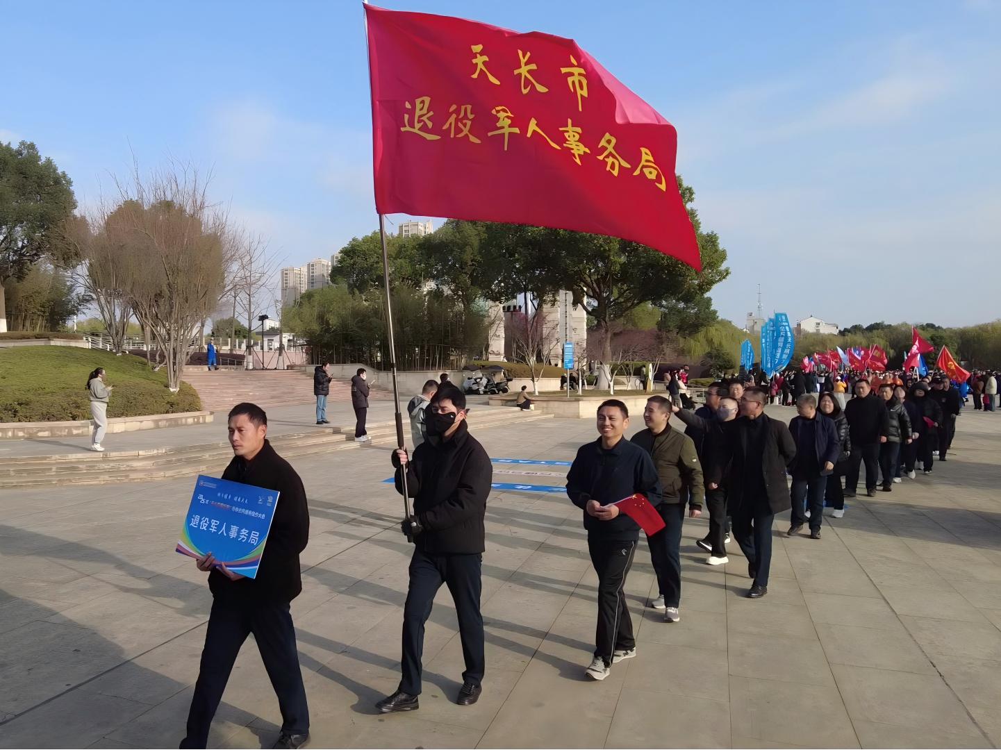 12月12日下午,冬日的阳光洒在天长市红草湖湿地公园,“天长农商行杯”冬季全民健身徒步大会在此热闹举行。现场彩旗飘扬,人群熙攘,来自各行各业的健身爱好者们齐聚一堂,共同开启这场充满活力与激情的健身之旅。其中,一支身着整齐服装、步伐矫健的队伍格外引人注目,他们便是天长市退役军人事务局代表队。