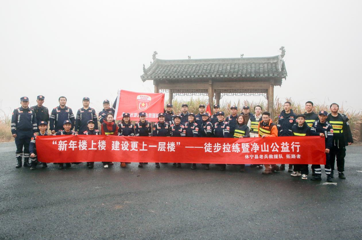 2026年第一天,休宁县老兵志愿者应急救援队组织40余名队员和志愿者踏上齐云山“九里十三亭”的霞客古道,开展“新年楼上楼,建设更上一层楼——徒步拉练暨净山公益行”活动,锤炼队员实战技能,磨炼坚强意志。