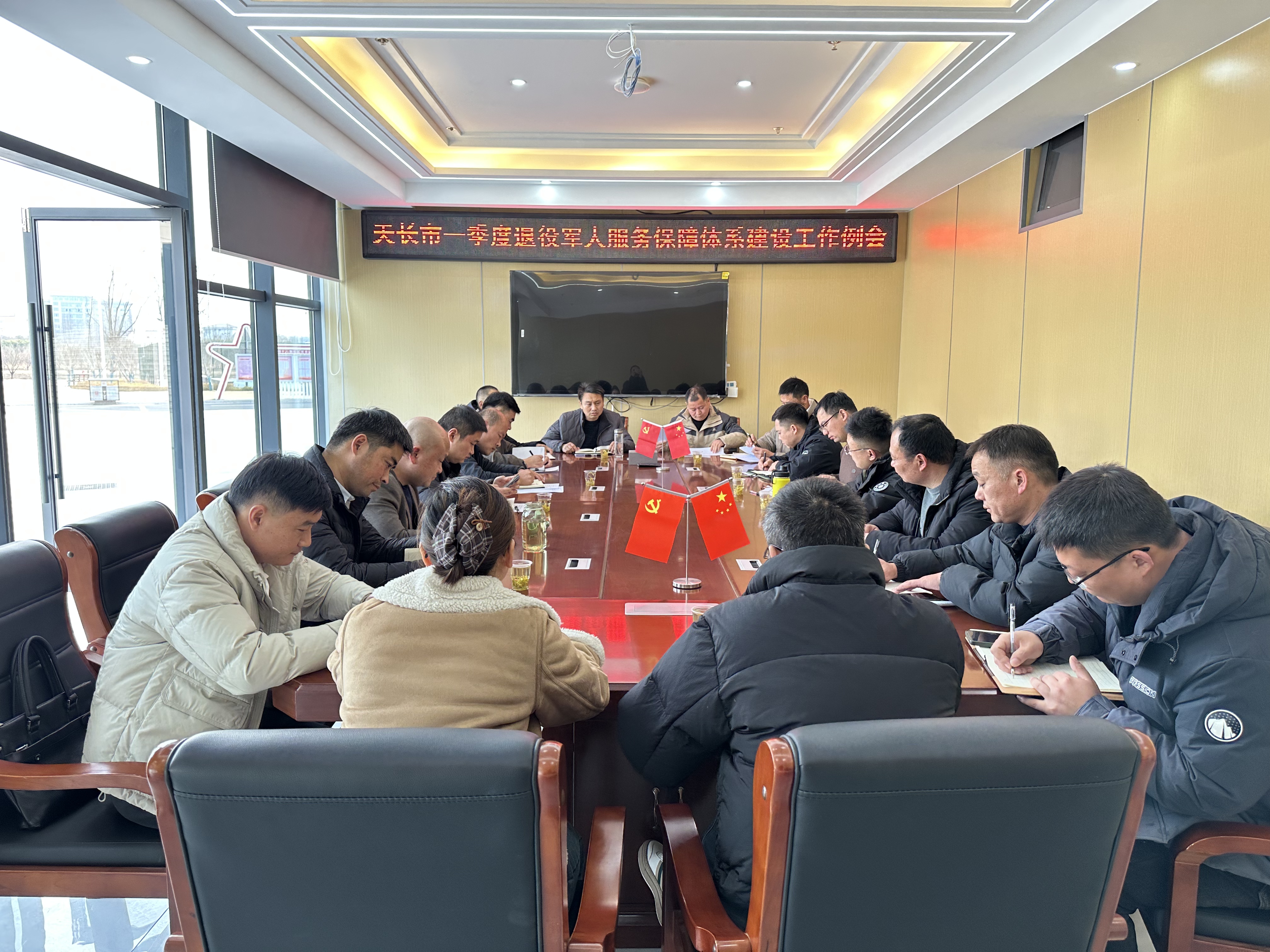 会议组织传达学习了《2026年度全省退役军人服务中心(站)一季度任务清单》、《天长市退役军人事务系统干部队伍综合能力素质提升工作计划》,并对下一步全市退役军人职业技能大赛、推进“五优”服务建设等重点工作进行了安排部置。