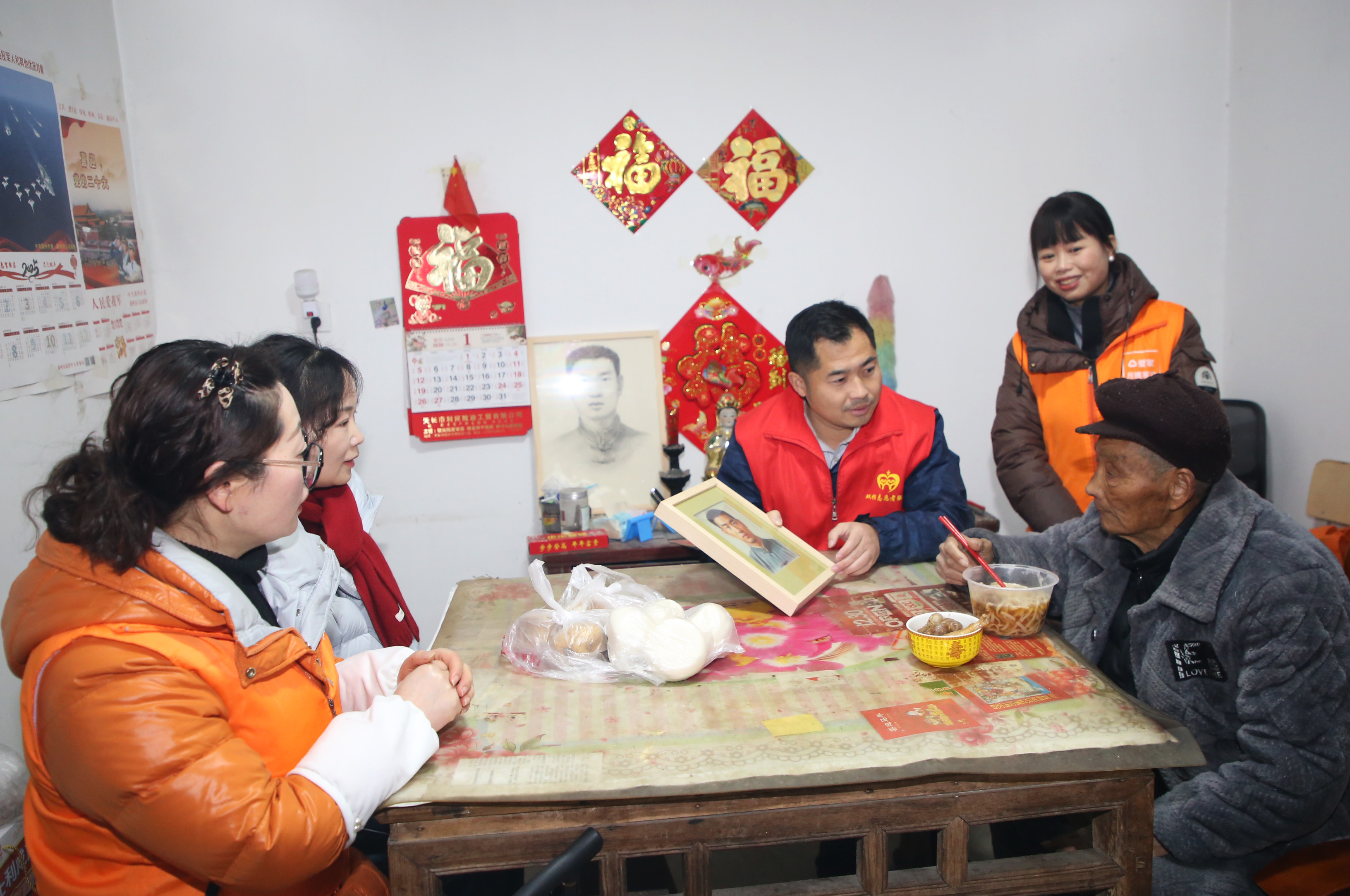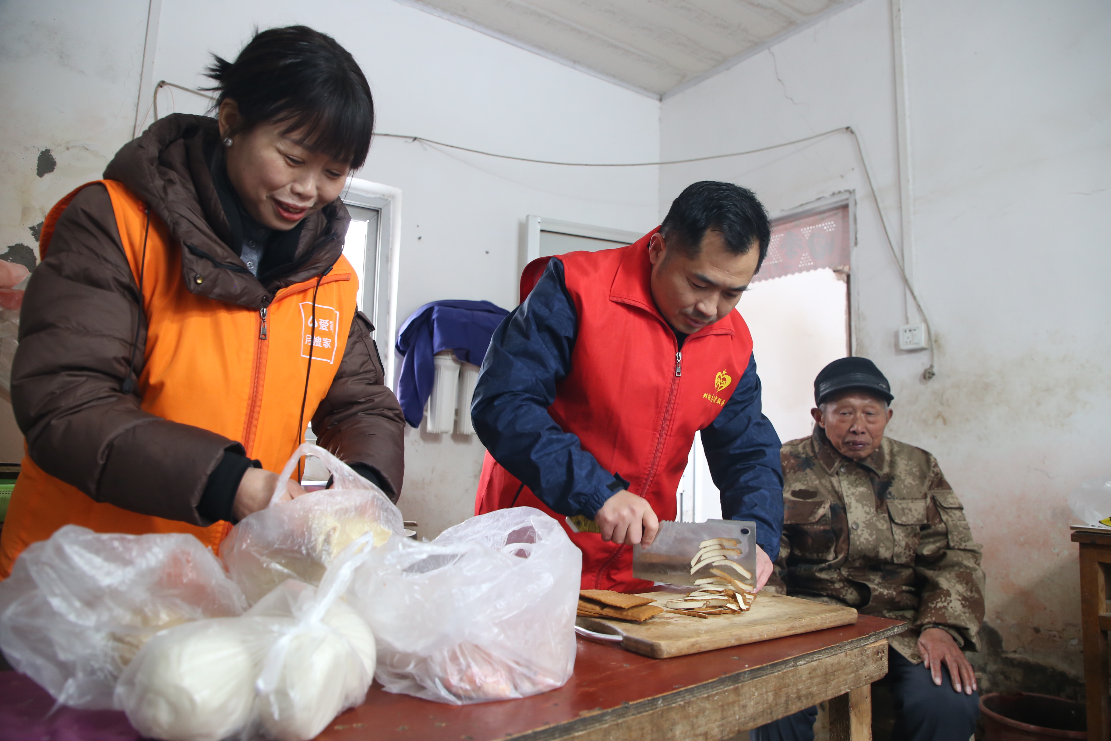 1月20日,大雪初霁,零下8摄氏度的严寒中,天长市石梁镇十八集社区山头队,88岁的烈士子女陈德云老人家里饭菜飘香,暖意流淌,志愿者们不仅带来了亲手烹制的板栗烧小鸡等可口菜肴,更陪伴老人唠家常、忆往昔。