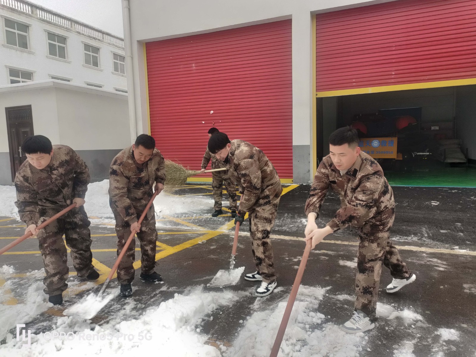 风雪无情人有情,团结协作显担当。经过三个多小时的持续奋战,镇政府院内的主通道、办公区出入口、群众办事等候区等重点区域的积雪和积冰被彻底清除干净,一条条宽敞整洁的“平安路”“暖心路”蜿蜒伸展,为干部职工和办事群众筑牢了出行安全防线。队员们脸上都洋溢着疲惫却满足的笑容,迷彩志愿服在皑皑白雪的映衬下,愈发鲜艳夺目,成为冬日里一道温暖人心的风景线。