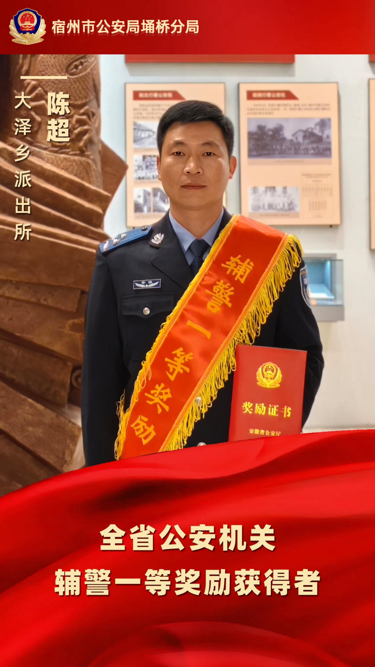 在皖北宿州市埇桥区大泽乡的街巷间,一抹“辅警蓝”常年穿梭忙碌,守护着一方烟火平安。他曾身着“橄榄绿”保家卫国,褪去军装后换上警服,以退役军人的忠诚底色扎根基层警务一线,十四载初心不改、担当不移,用实干与坚守赢得群众赞誉,荣获全省公安机关辅警一等奖励。他就是宿州市公安局埇桥分局大泽乡派出所四级辅警陈超,用行动诠释“脱下军装还是兵,穿上警服勇担当”的铮铮誓言。
