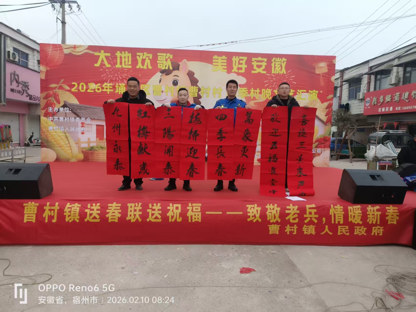 2月10日,新春来临之际,宿州市埇桥区曹村镇人民政府、曹村镇新时代文明实践站、曹村镇文化站、曹村镇退役军人服务站联合举办“送春联送祝福·致敬老兵 情暖新春” 活动,以笔墨传温情、以春联寄敬意,为辖区退役军人送上新春祝福与组织关怀。