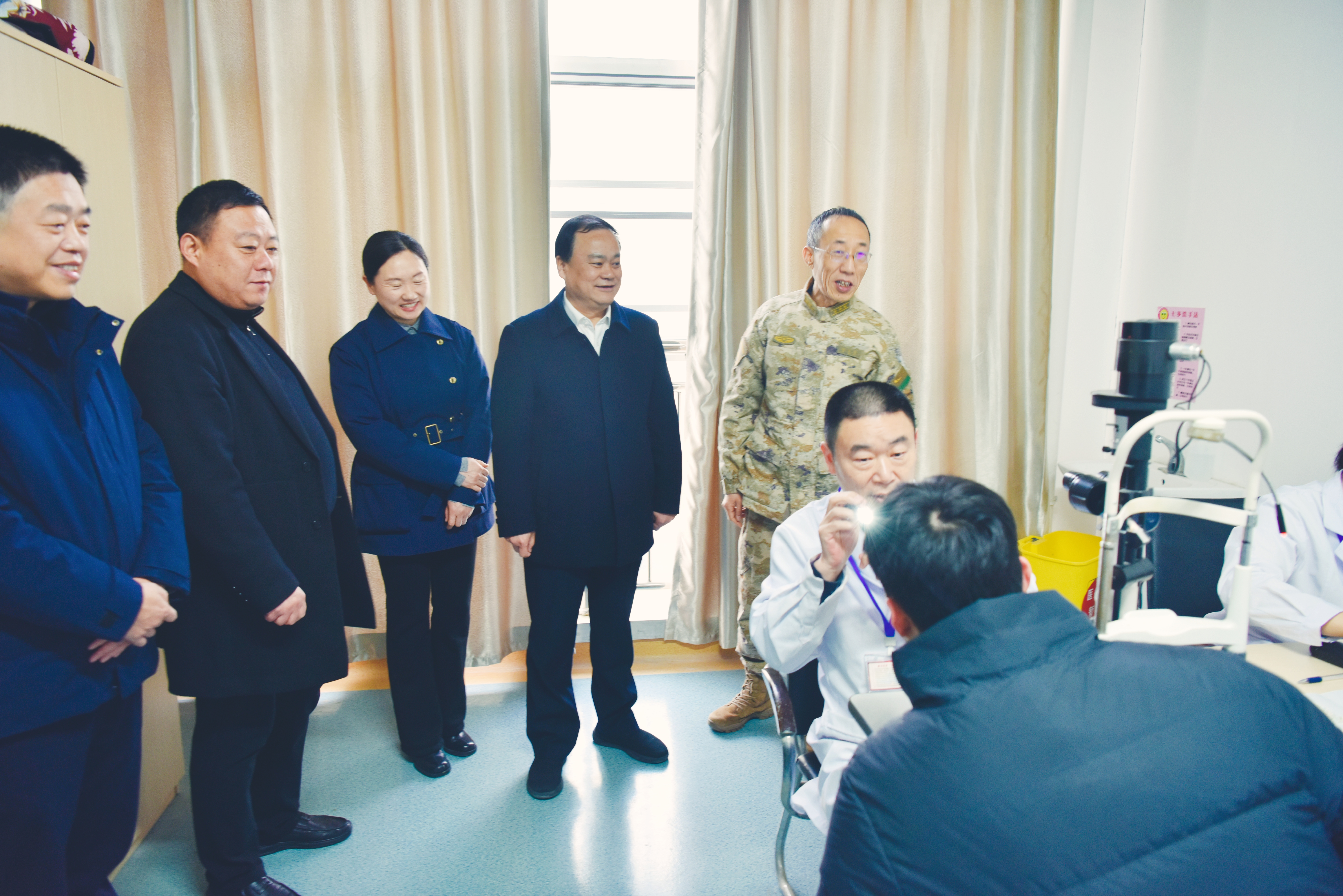 王继军先后实地察看了内科、视力检测等征兵体检室,详细了解体检流程、人员配备、服务保障及应征青年的整体素质情况,叮嘱大家要以高度的政治责任感,严格按照征兵体检标准规范细致开展各项检查,守好兵员质量“第一道关口”。期间,王继军还与候检应征青年亲切交流,勉励他们珍惜机遇、锤炼品格,在军营大熔炉中淬炼成钢,为国防和军队现代化建设贡献青春力量。