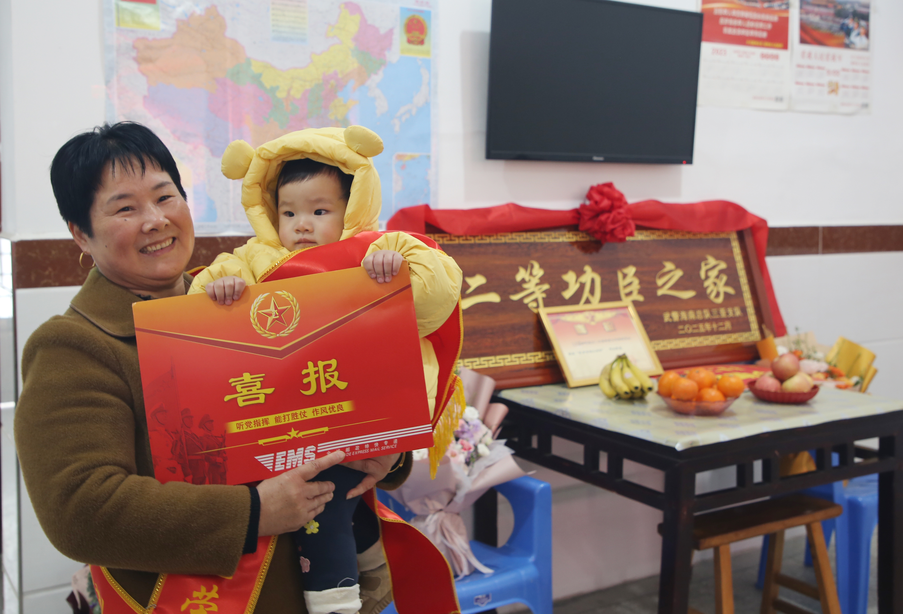 在吴登康家门前,金灿灿“光荣之家”门牌与“热烈祝贺吴登康同志在部队荣立二等功”的条幅格外醒目。吴登康一身戎装,佩戴军功章,身披“教育管理二等功”绶带,其家人身披“一人立功,全家光荣”绶带整齐站立。武警海南总队亚三支队中校主任程飞现场宣读喜报,天长市委常委、人武部部长张博赠送“二等功臣之家”牌匾,市退役军人事务局党组书记、局长胡步金颁发奖励金,市人大常委会副主任、秦栏镇党委书记徐家林为亲属献上鲜花。军地领导与吴登康全家合影时,彩花漫天绽放,现场百余名邻里共同见证这一光荣时刻。