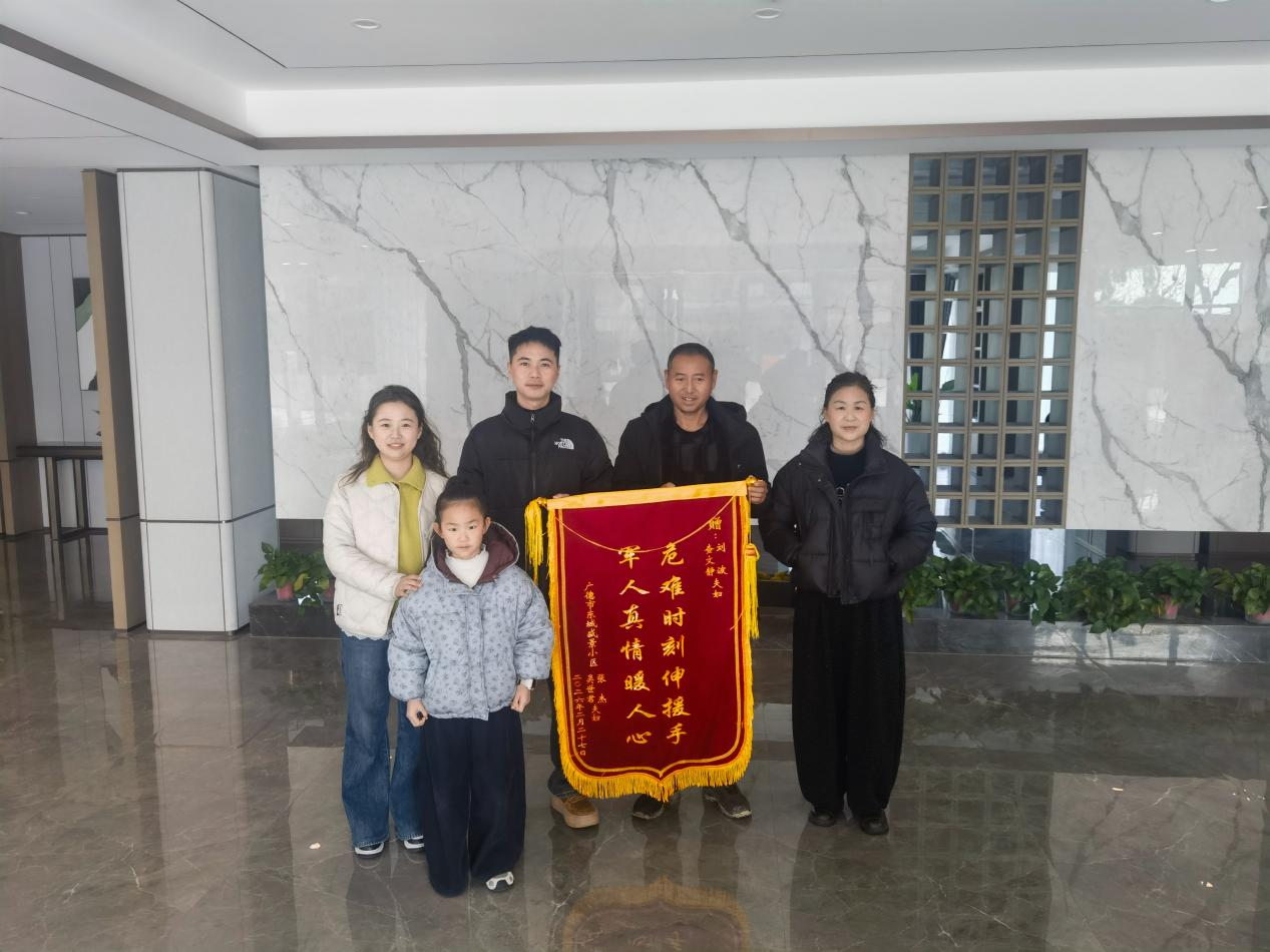 近日,一面绣着“危难时刻伸援手 军人真情暖人心”的鲜红锦旗,被广德市东城胜景小区居民张先生一家送到现役军人刘波及其家人手中。锦缎凝情,墨字暖心,这面满载谢意的锦旗背后,是十余天前在广德市卢村水库边一场惊心的暖心事,更是新时代军人刘波,将“护民平安”刻入骨髓,休假不休责、危难勇挺身的生动写照。