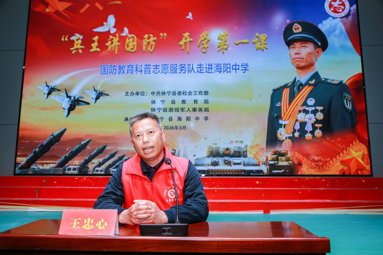 3月4日,安徽省休宁海阳中学迎来一位特殊的“老兵”,他就是“八一勋章”获得者、导弹兵王、一级军士长王忠心,以亲身经历讲述强军故事、普及国防知识,为师生们带来一堂生动深刻的国防教育“开学第一课”。全校师生齐聚一堂,共沐国防教育、厚植家国情怀。
