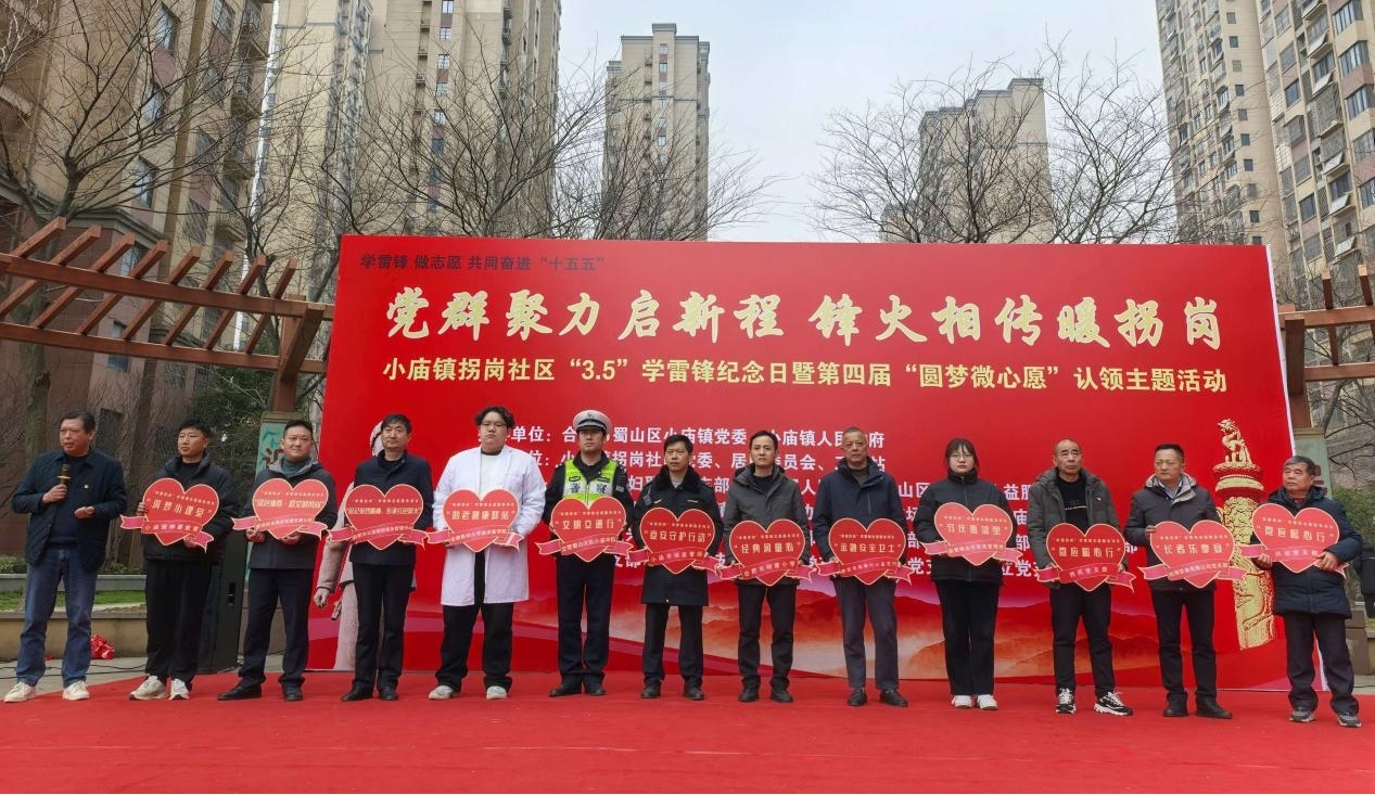 三月春风暖人心,雷锋精神照征程。为深入学习贯彻党的二十届四中全会精神,弘扬“奉献、友爱、互助、进步”的志愿精神,深化“党建+志愿服务”“党建+慈善”基层治理模式,推动学雷锋活动走深走实,3月5日上午,合肥市蜀山区小庙镇拐岗社区党委、退役军人服务站 、工会驿站、关工委联合在西城东苑志愿服务广场,举办“党群聚力启新程 锋火相传暖拐岗”“3·5”学雷锋纪念日暨第四届“圆梦微心愿”认领主题活动。辖区各党支部、退役军人代表、驻地单位、爱心企业、志愿服务组织及群众共同参与,以实际行动传承雷锋精神,传递社区温暖。