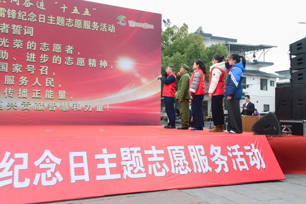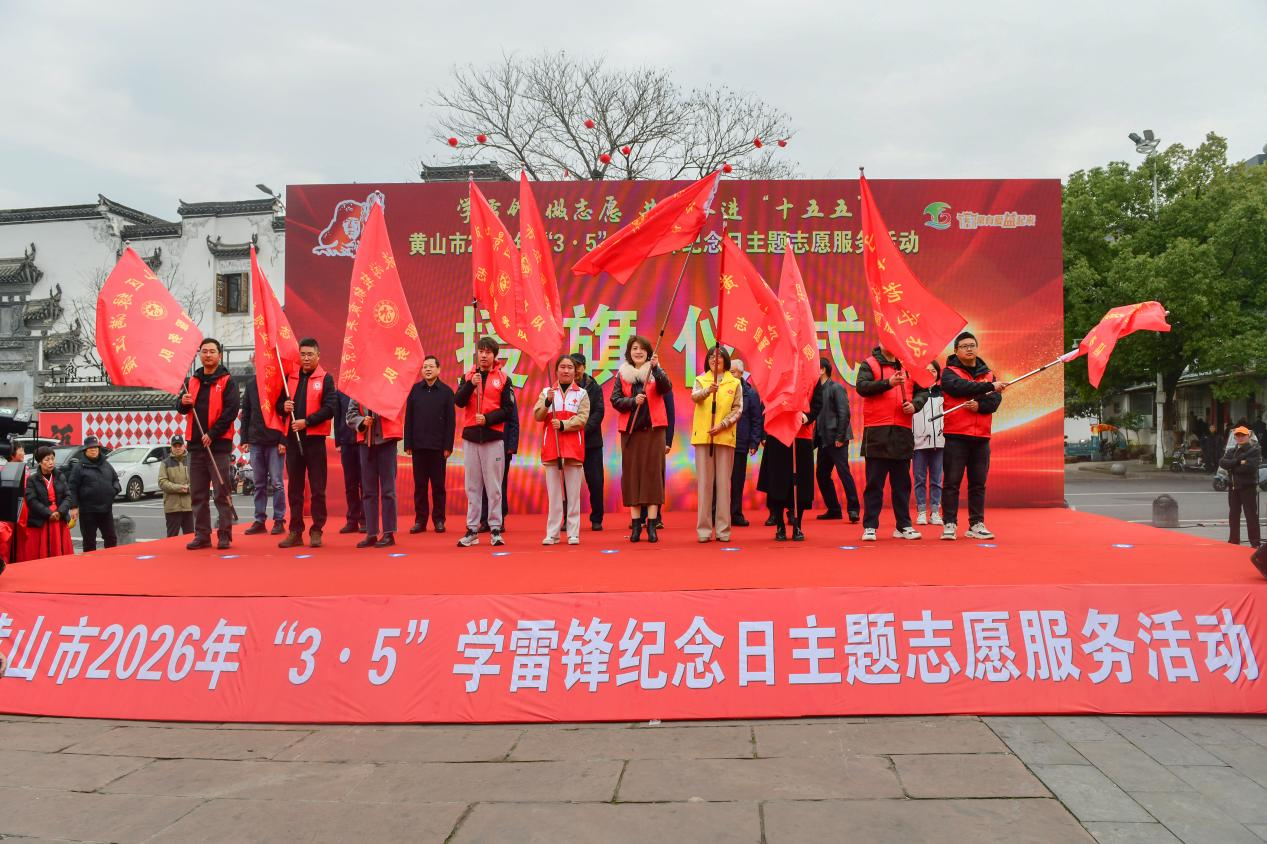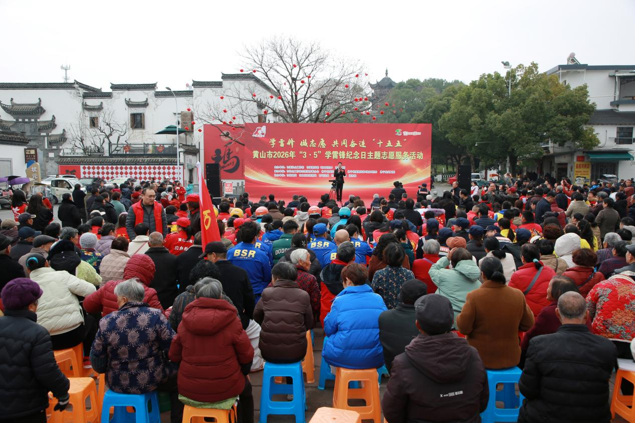 3月4日,黄山市2026年“3·5”学雷锋纪念日主题志愿服务活动在休宁状元广场举行。“八一勋章”获得者、全国道德模范王忠心,全国“最美拥军人物”、安徽省最美志愿者姚华亮,市及区县志愿者代表及小学生志愿者代表,以及老兵应急救援队员等参加活动。